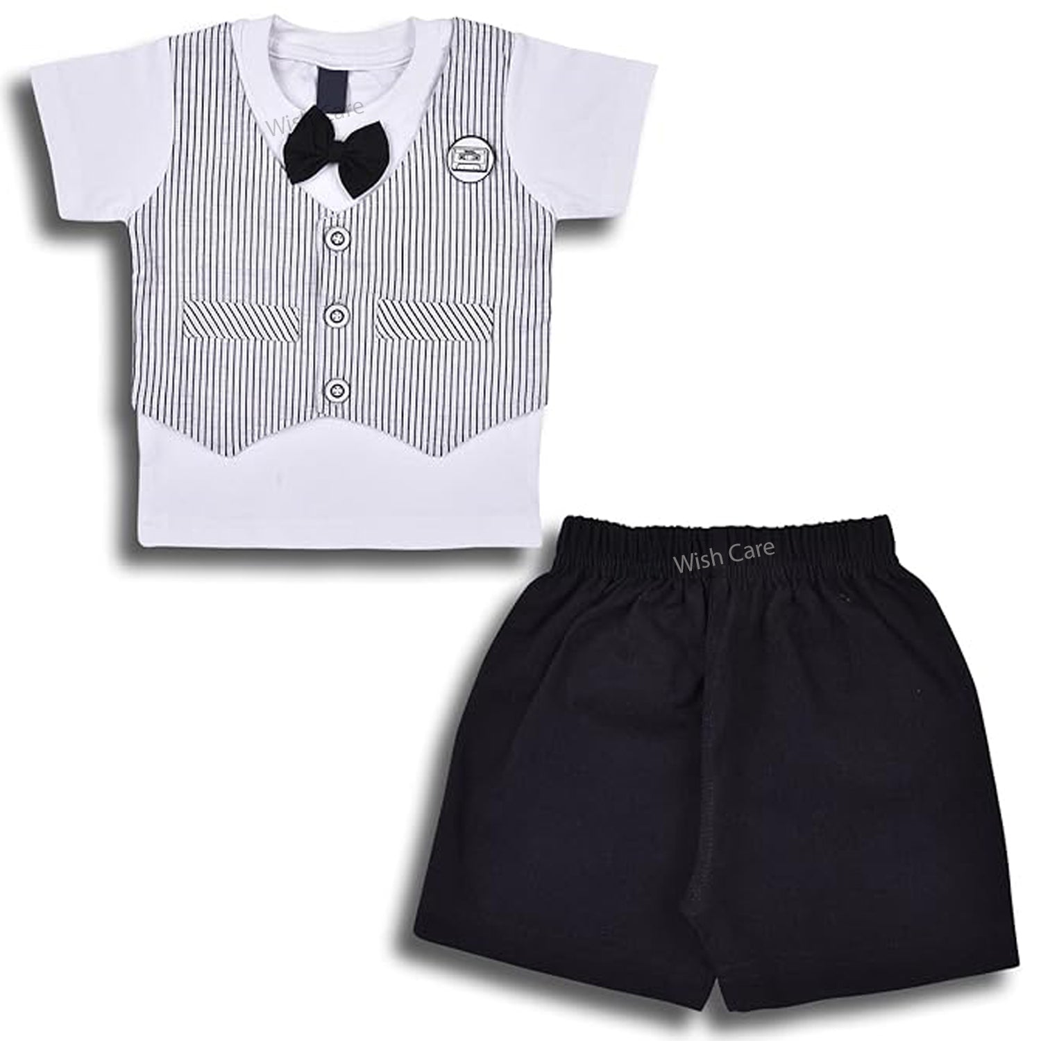 Baby Boys Cotton Striped T-shirt and Shorts Clothing Set - bt624blk_0-3_Months