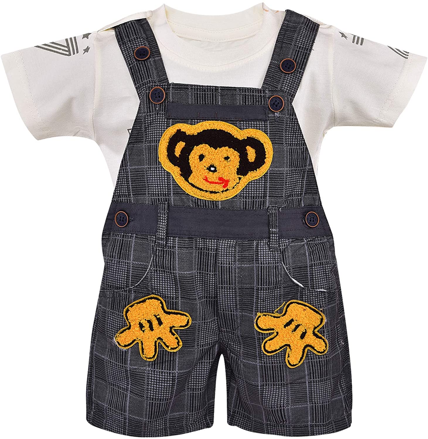Baby Boys Dungaree Dress For Kids-(bt47gry) - bt47gry_0-3 Months