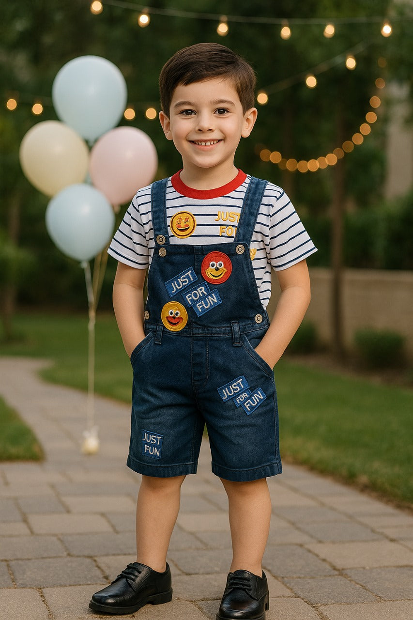 Boys Striped Denim Dungaree Set