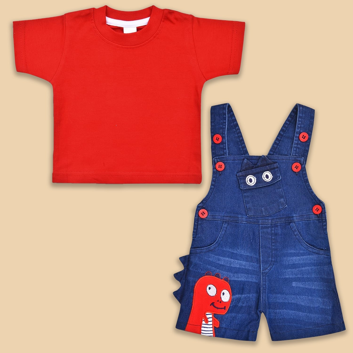 Baby Boys T-shirt And Dungaree For Boys - btp4042rd_3-6_Months