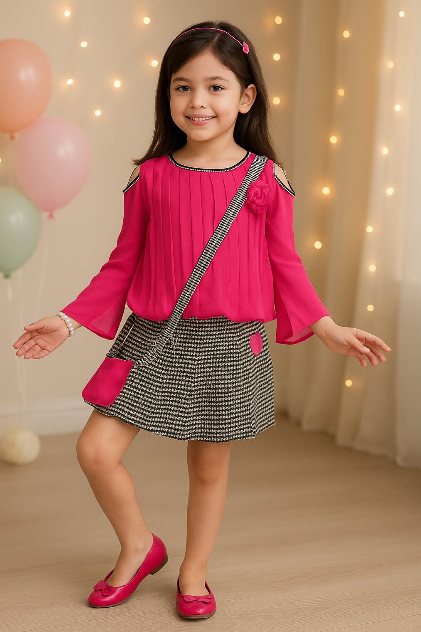Girls Clothing Set Top with Skirt and Sling bag For Girls