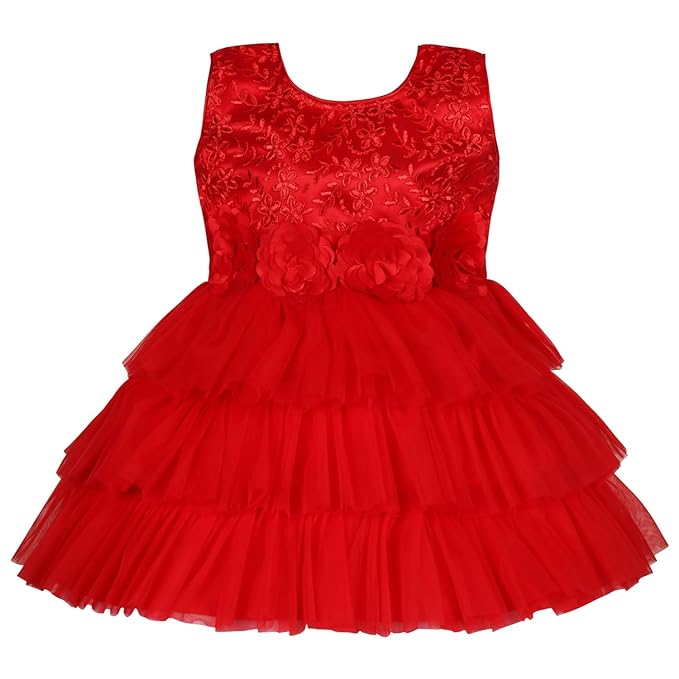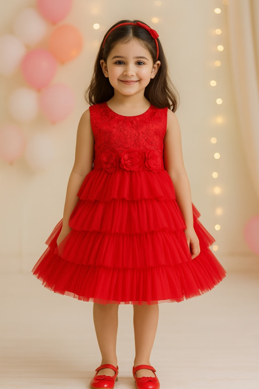 Self Design Layered Dress with Hair Band - fe2941 - fe2941red_1-2_Years