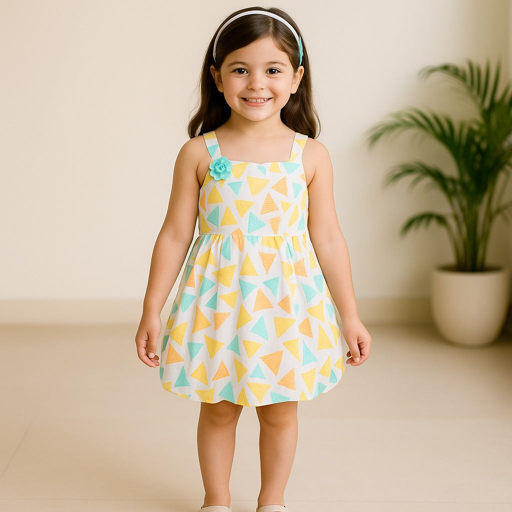 Girls Cotton Printed Smocking Casual Dress - csl311yg_3-6 Months