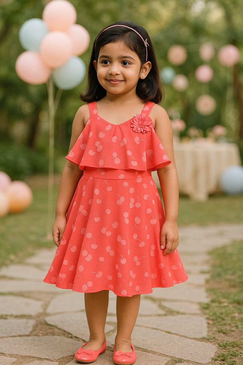Baby Girl's Cherry Print Casual Summer Frock-(csl338pch)
