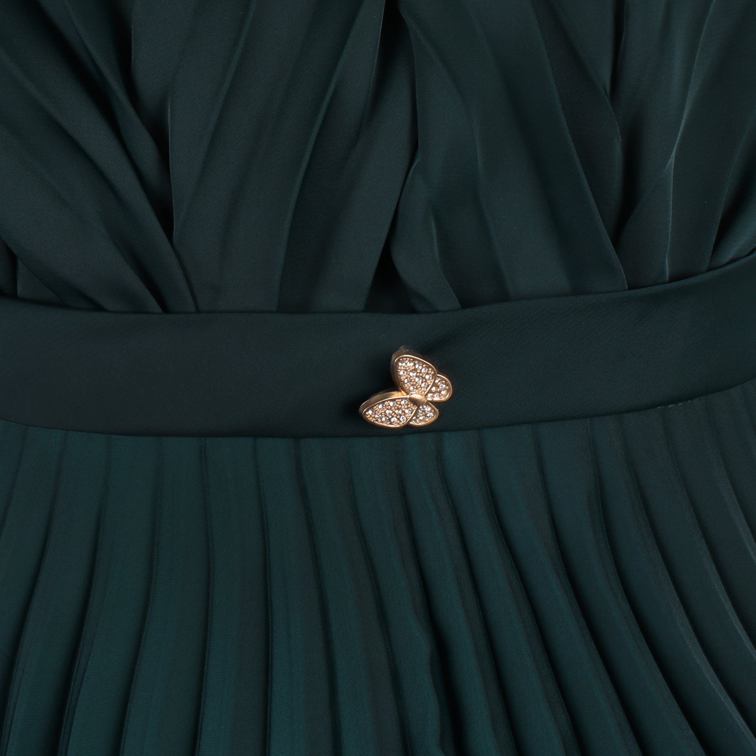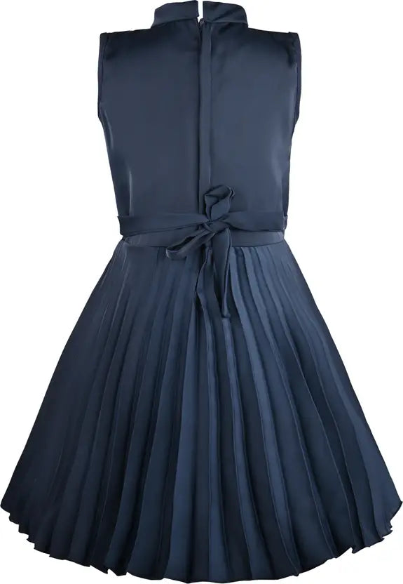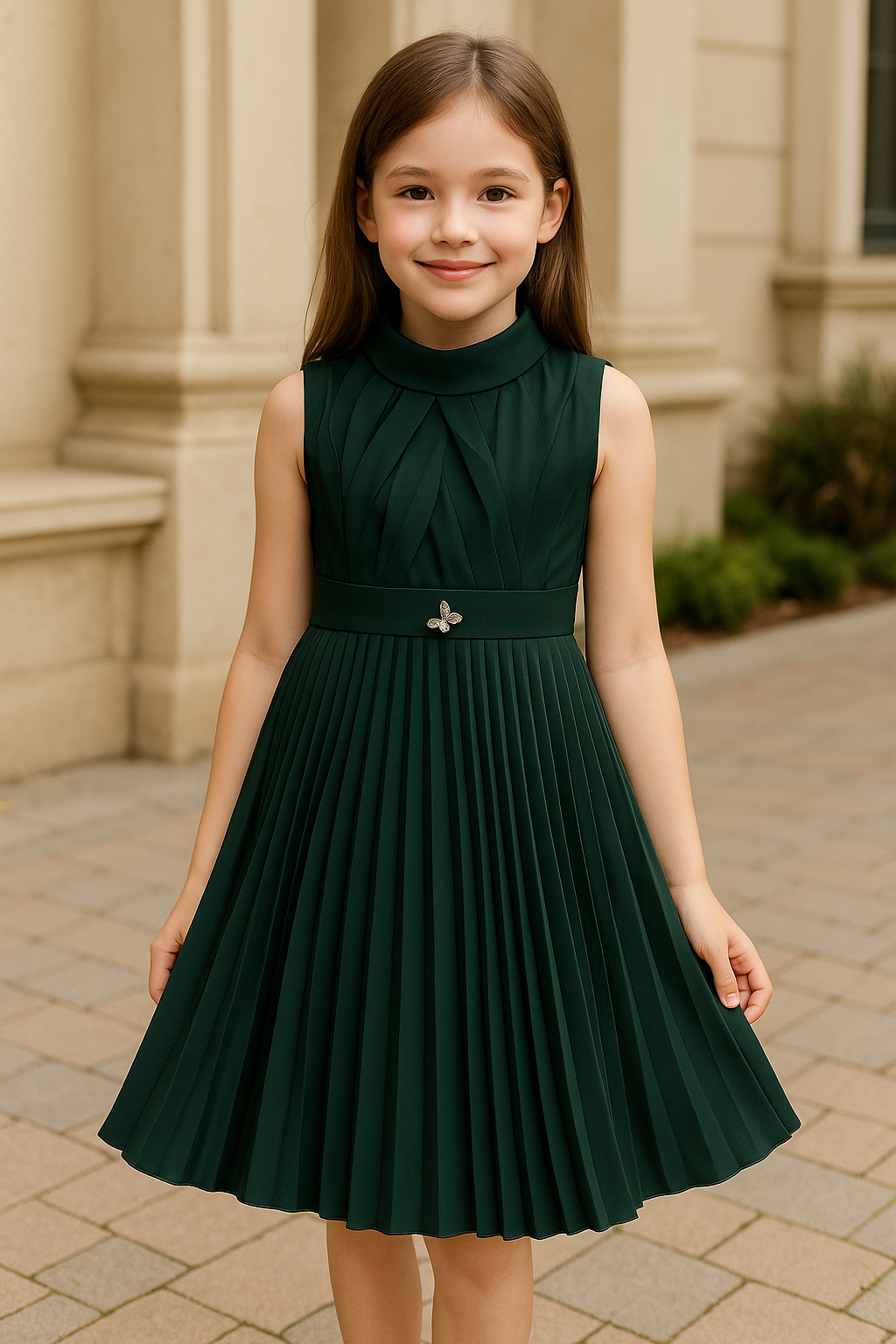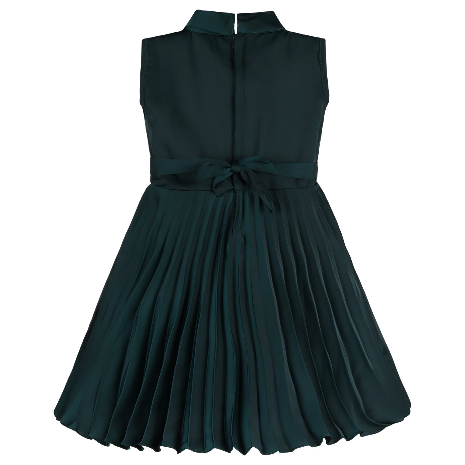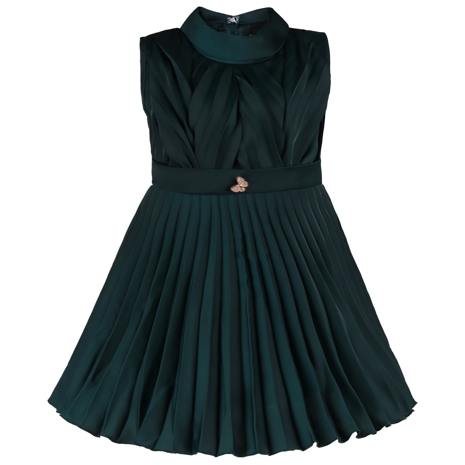 Girls Satin Solid Pleated Casual Dress - stn853grn_3-6_Months