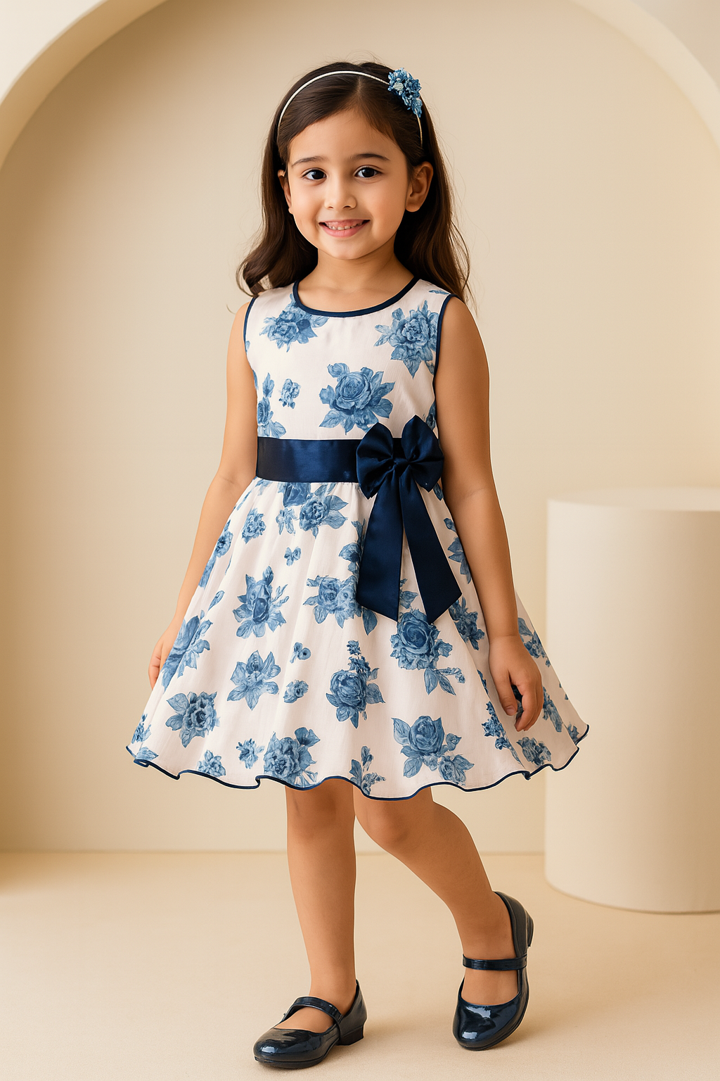 Blue Floral Printed A-Line Dress - fr85nb_0-3 Months