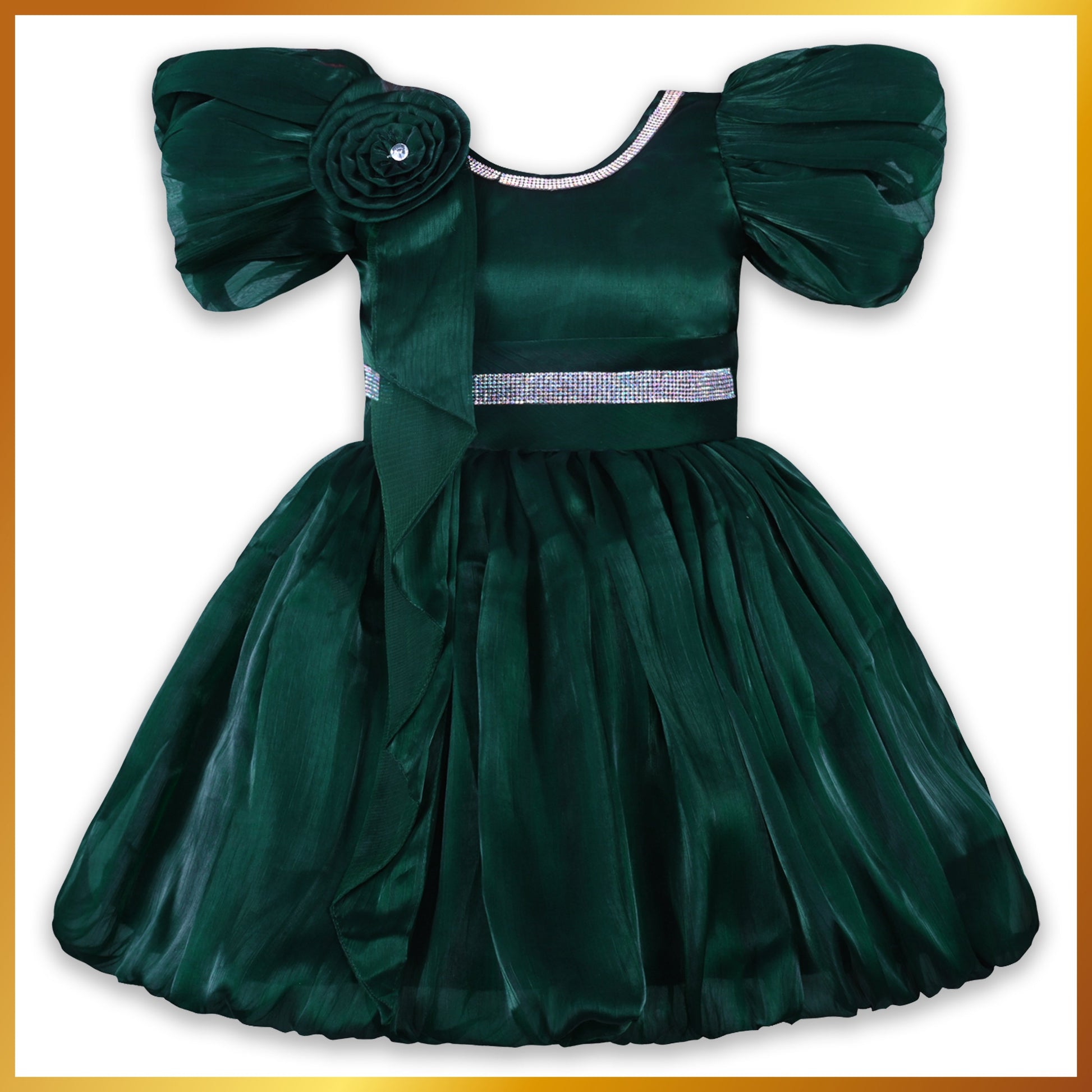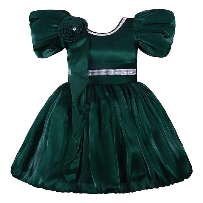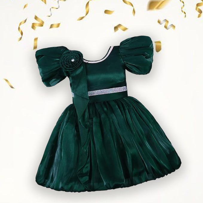 Girls A line Embellished Party Dress - bxap258dgrn_6-9_Months