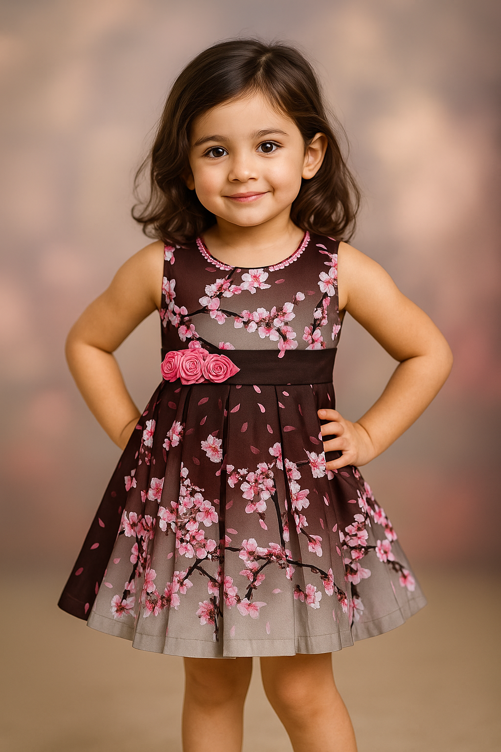 Purple Floral Printed A-Line Dress - fe3157pnk_1-2_Years
