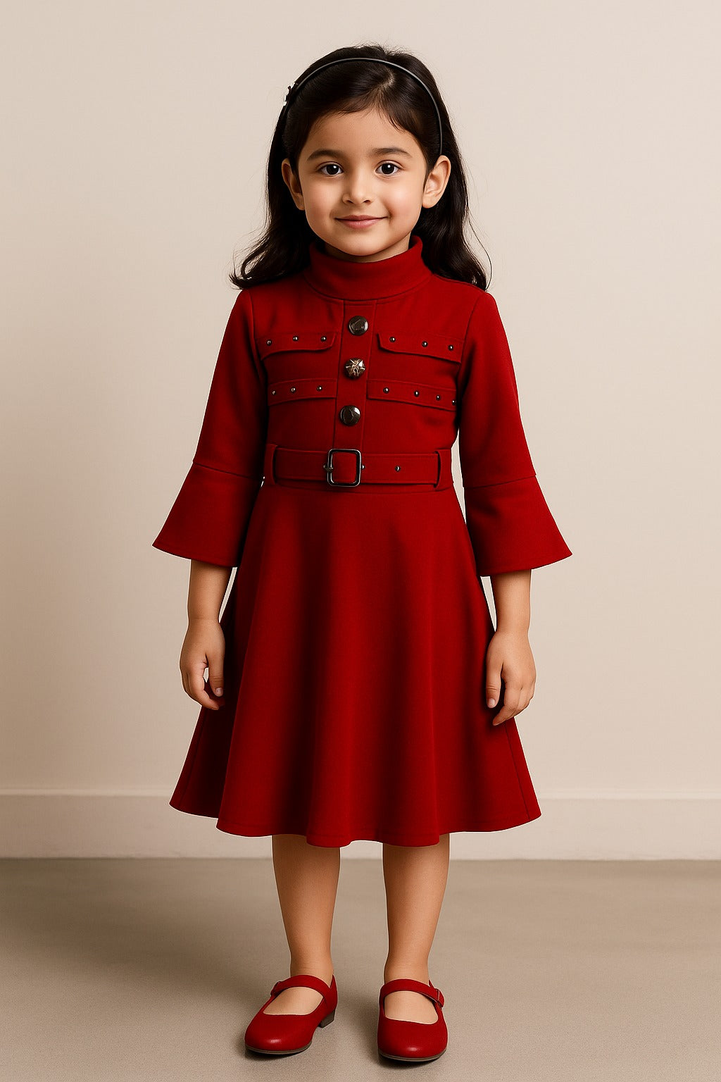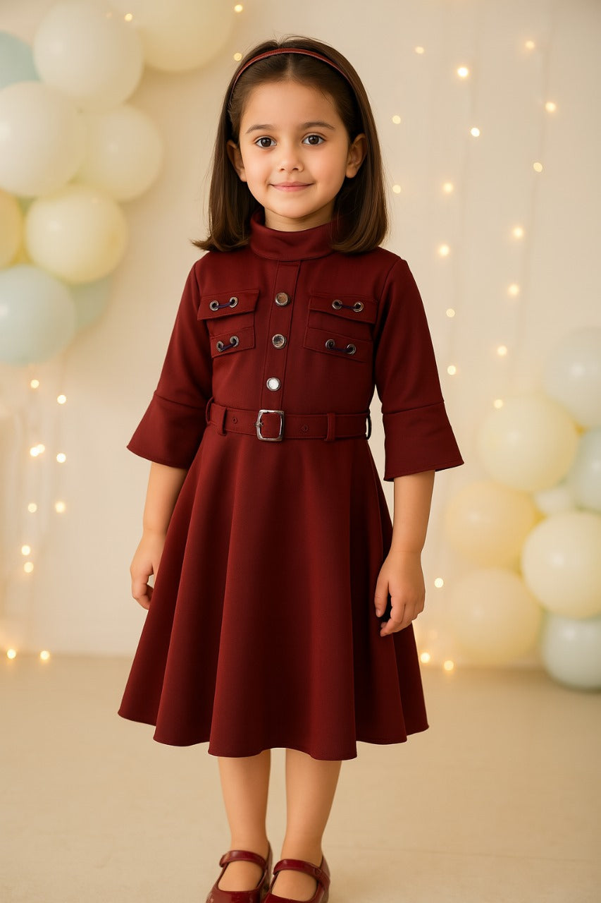 Girls A-Line Maroon Colour Dress - fm13mrn_1-2 Years