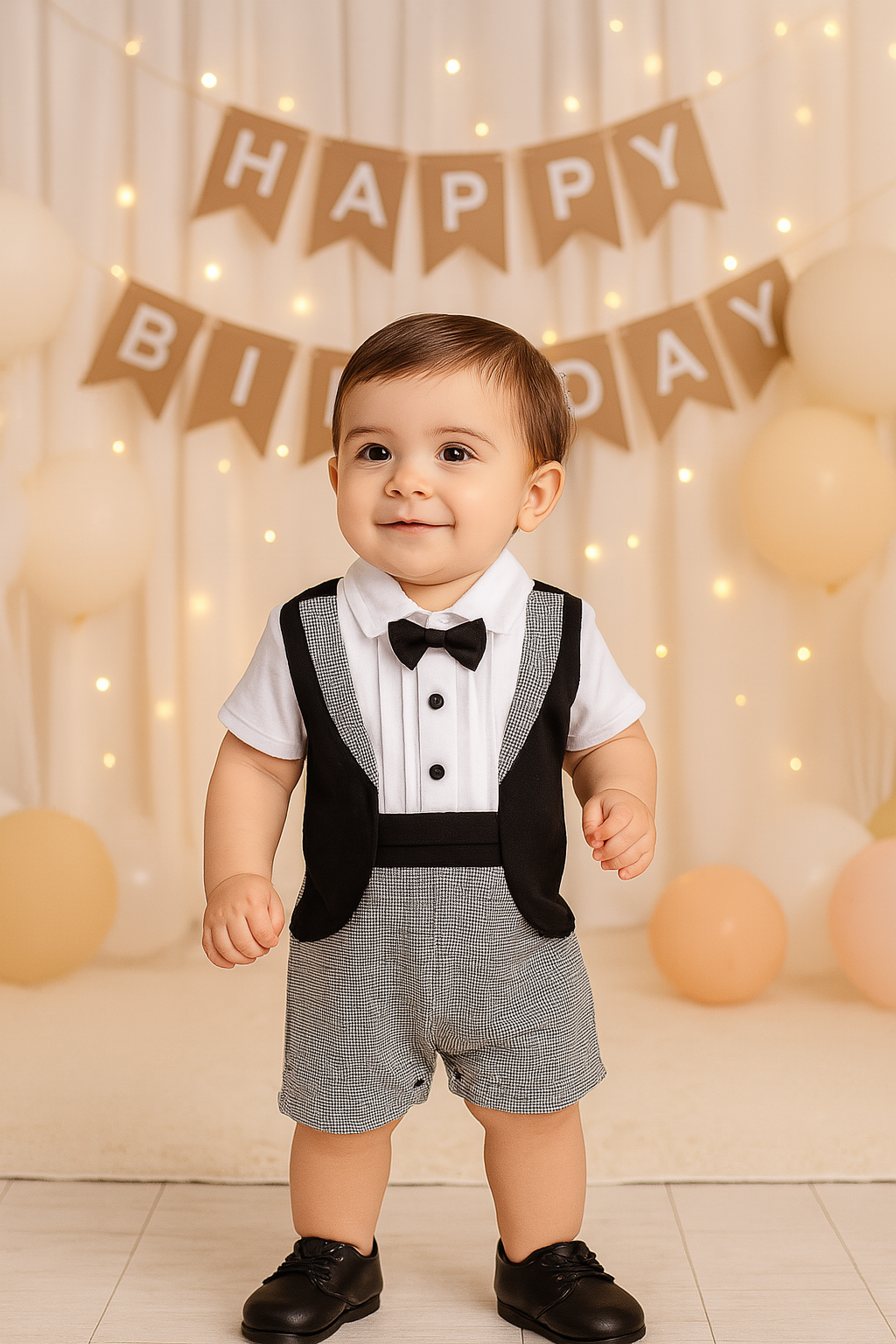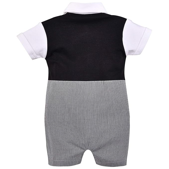 Boys Attached Coat Rompers with Bow Tie - bt65blk_3-6 Months