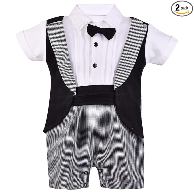 Get your little boy ready for any special occasion with our Boys Attached Coat Rompers. Featuring a stylish bow tie and attached coat, he will look dapper and be comfortable all day long. Perfect for weddings, holidays, or any formal event. Simple, yet sophisticated.