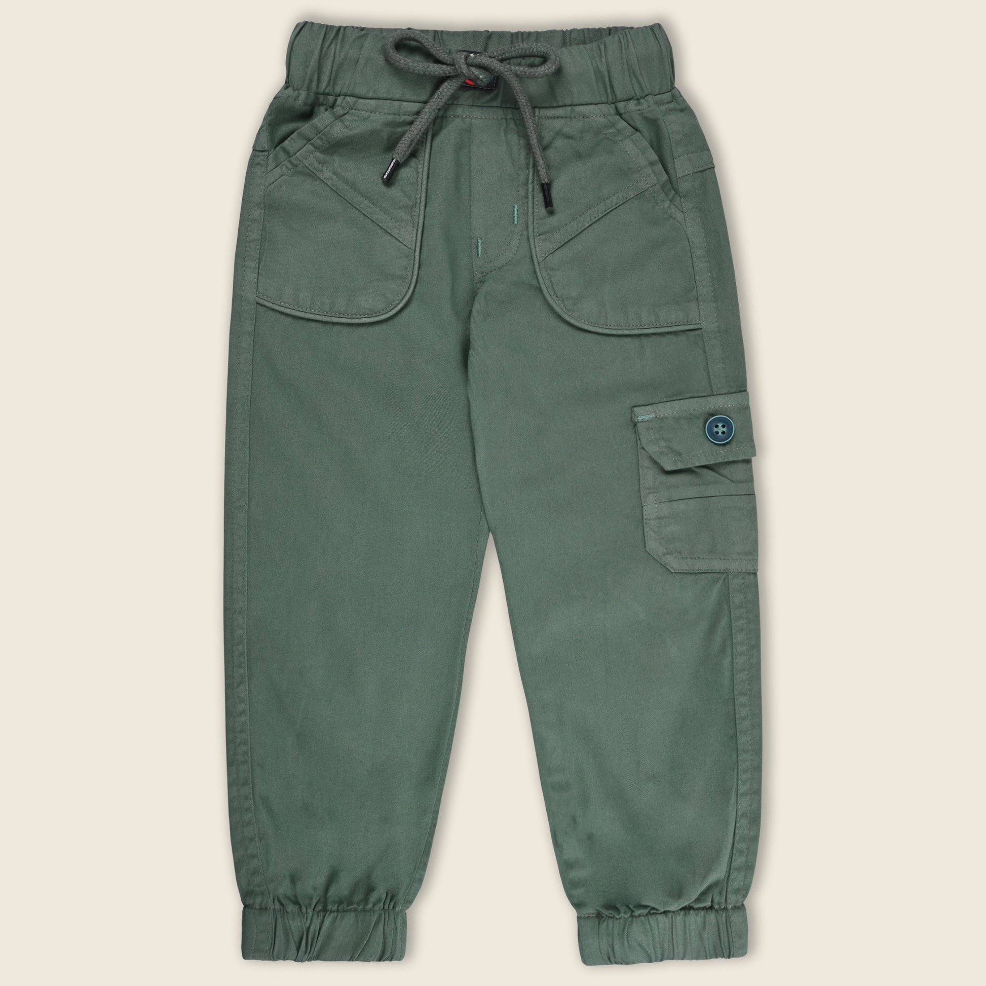 Boys Cargo Cotton Elastic Trouser - Js64lgrn_3-4_Years