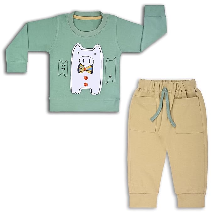 Boys Humour and Comic Patch Work T-Shirt and Trousers bt607grn - bt607grn_0-3_Months