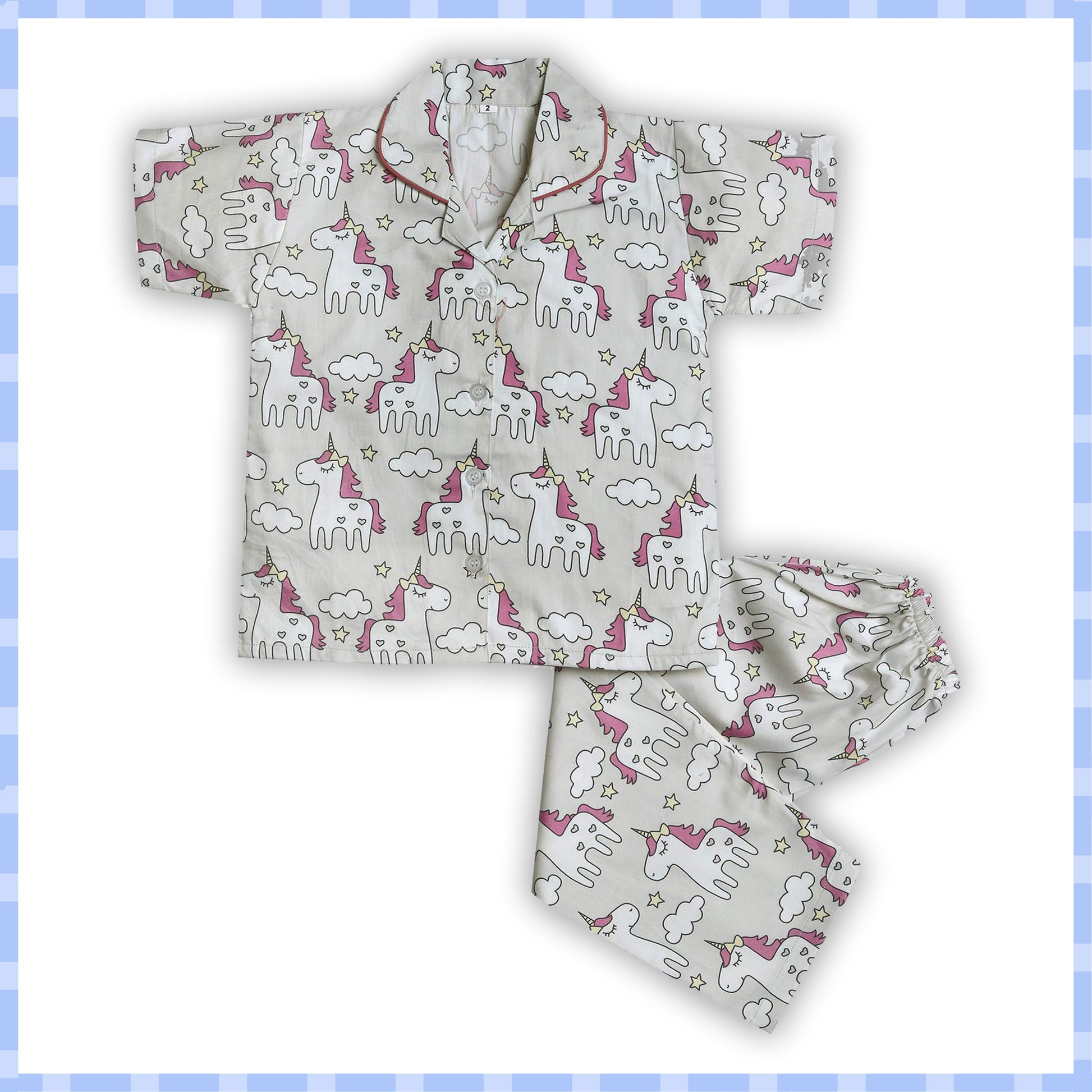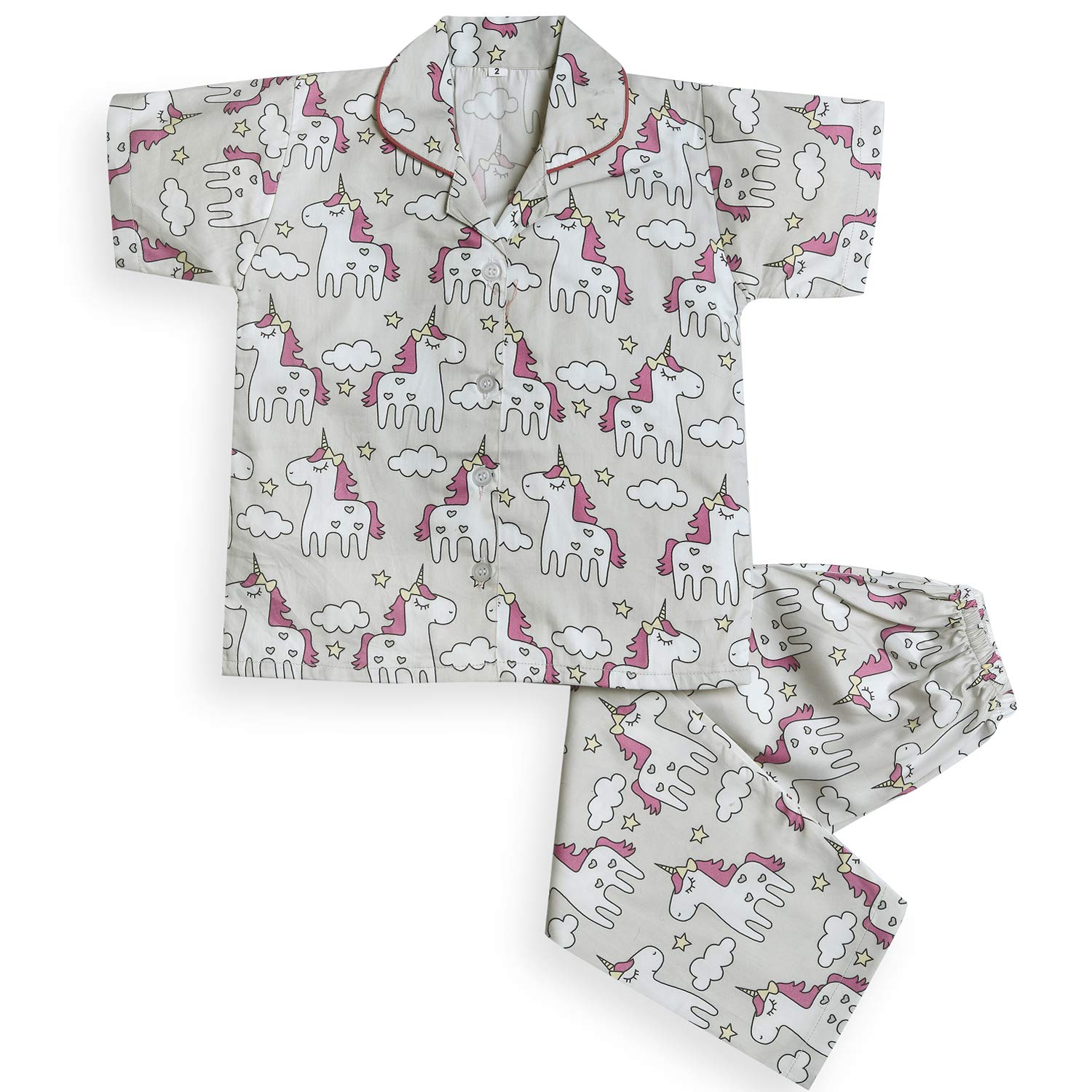 Unisex Printed Top and Bottom Pyjamas Night Dress - ND20gry_2-3 Years