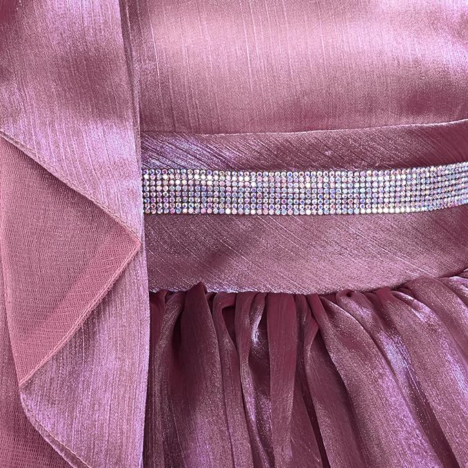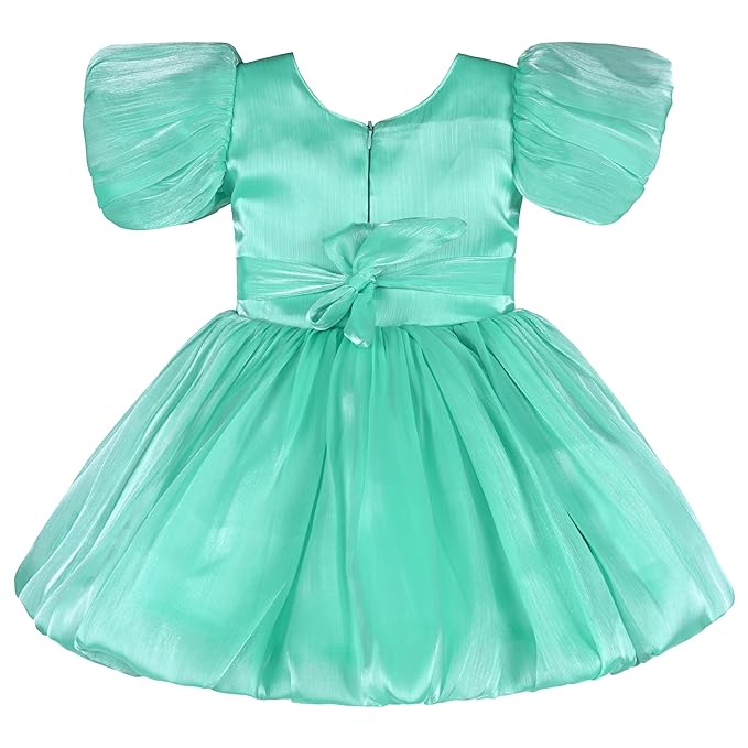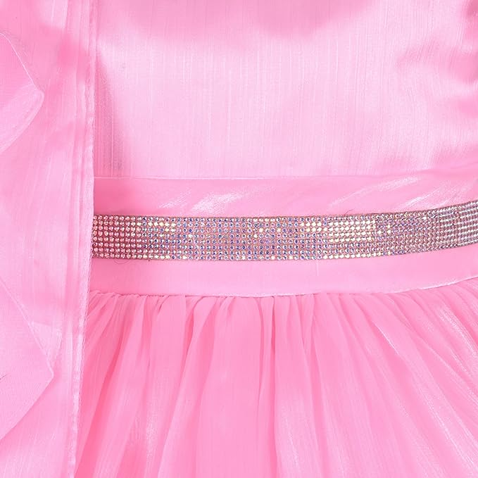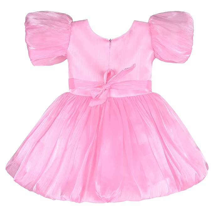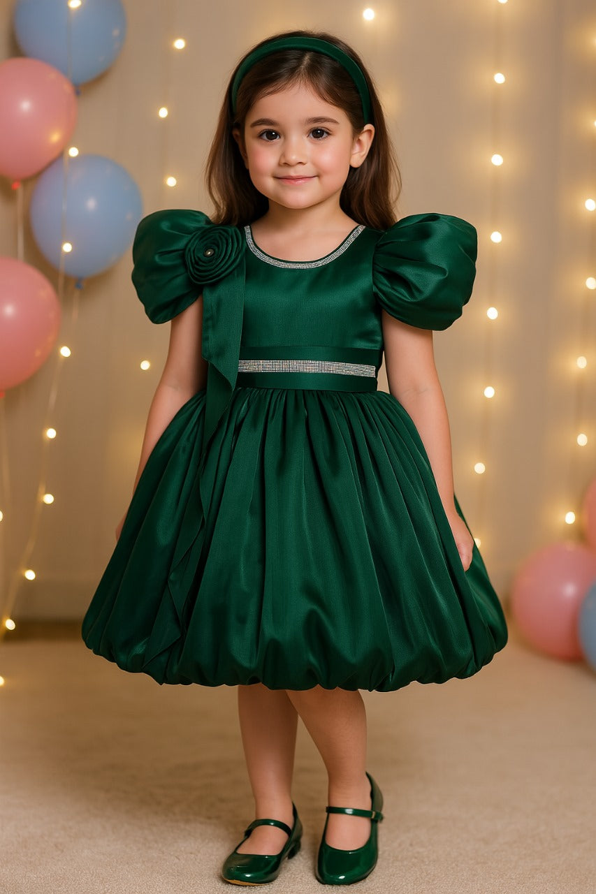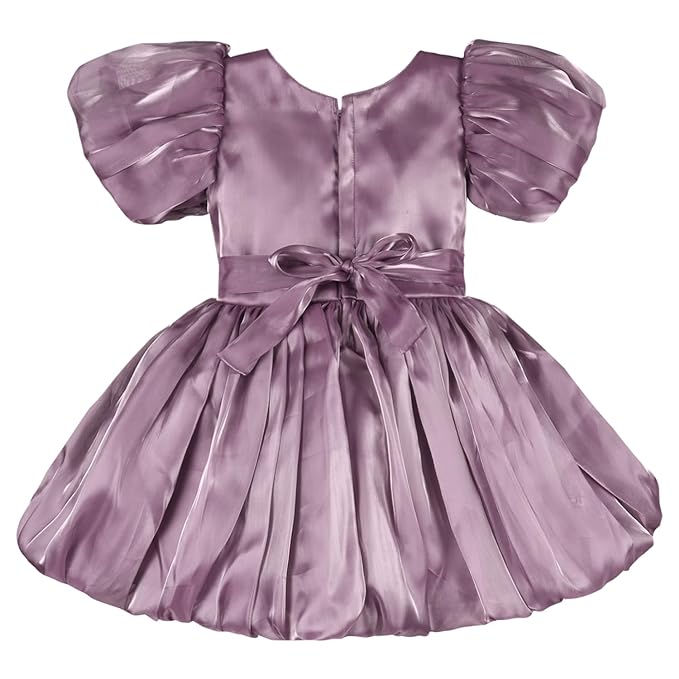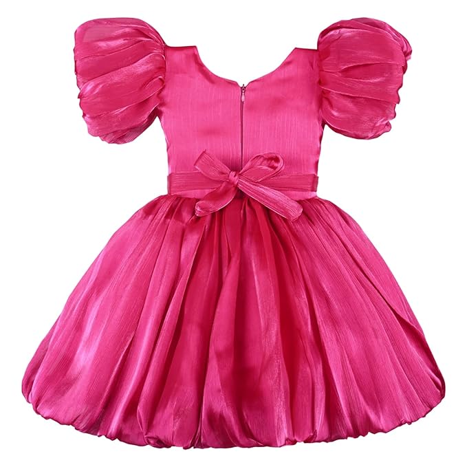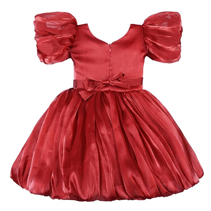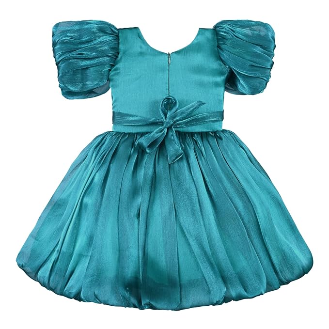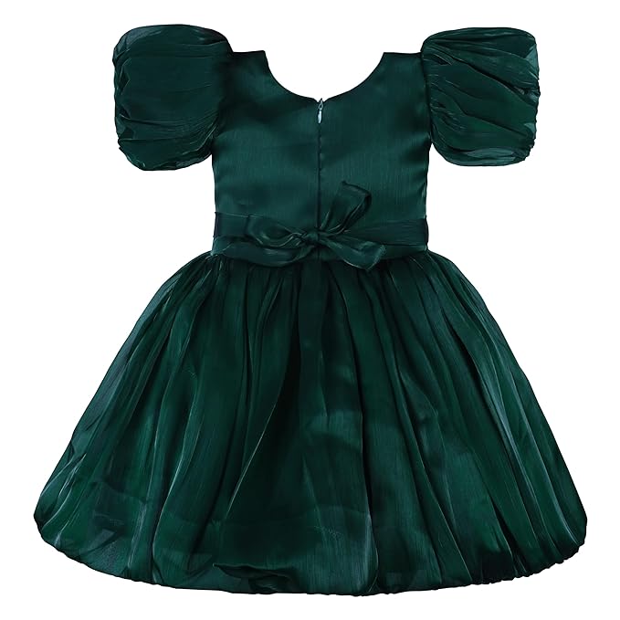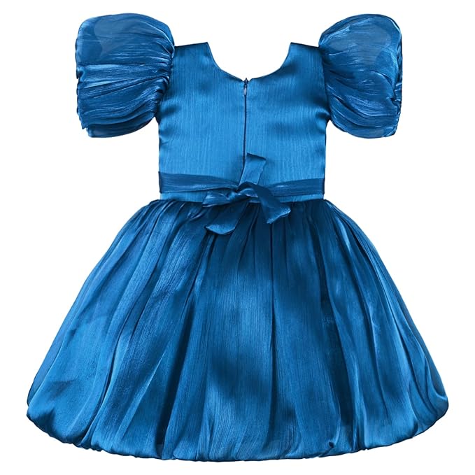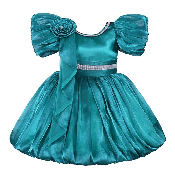This rhinestone floral embellished knee-length dress is a stunning addition to any little girl's wardrobe. Featuring elegant puffed sleeves and a stylish balloon hem skirt, it creates a charming and graceful silhouette. The classic round neck adds a timeless touch, making it perfect for special occasions like birthdays, weddings, or festive celebrations. Crafted from soft tissue Organza fabric, it ensures both comfort and a luxurious feel. The dress is adorned with delicate rhinestone floral embellishments, adding a hint of sparkle. A back zip closure allows for easy dressing, making this outfit as convenient as it is beautiful.