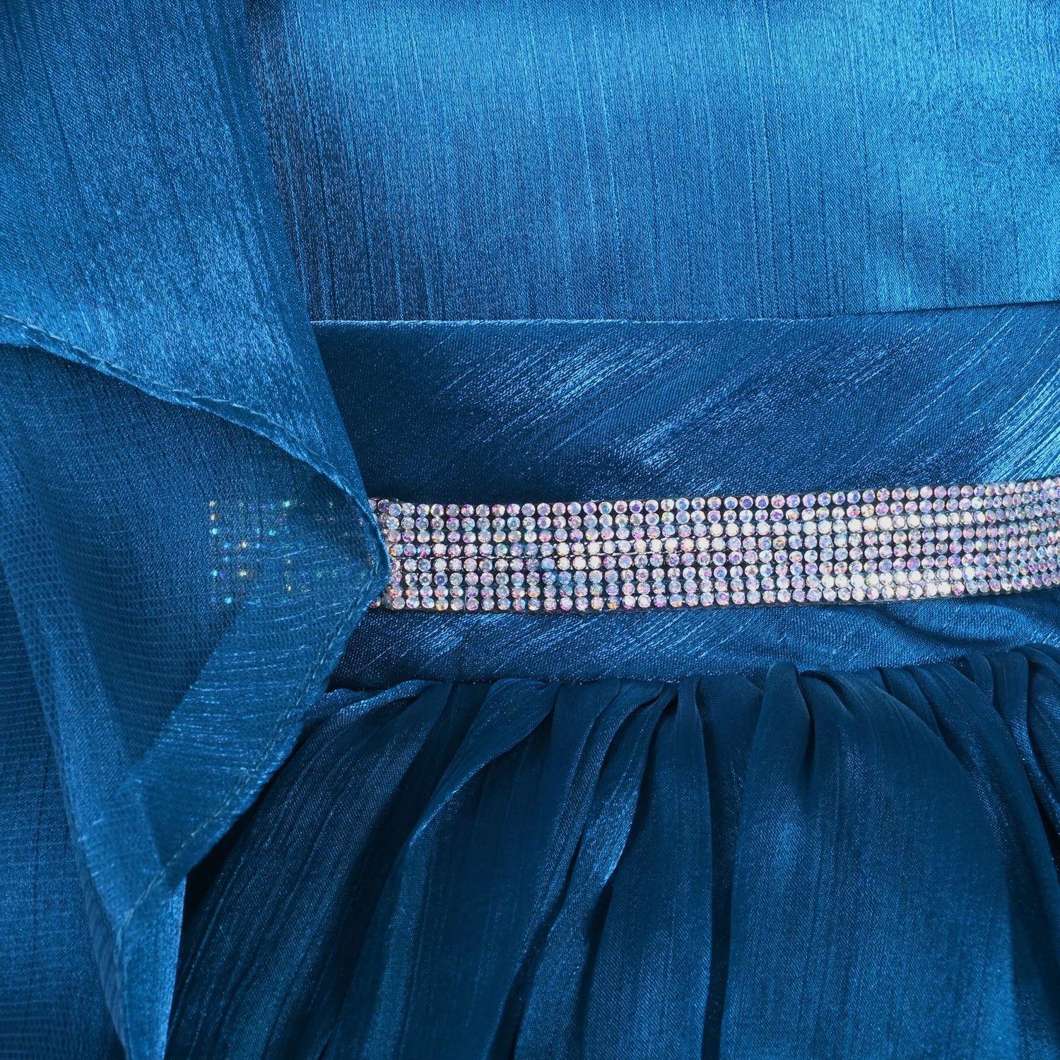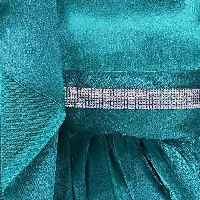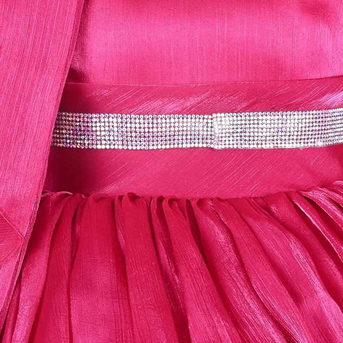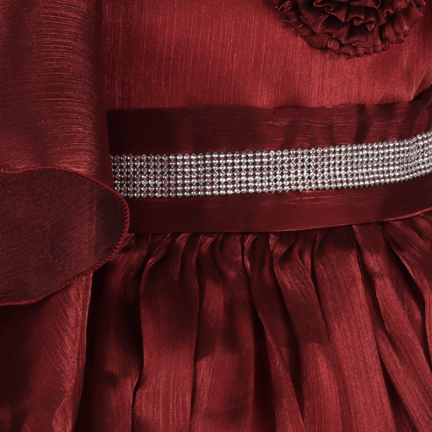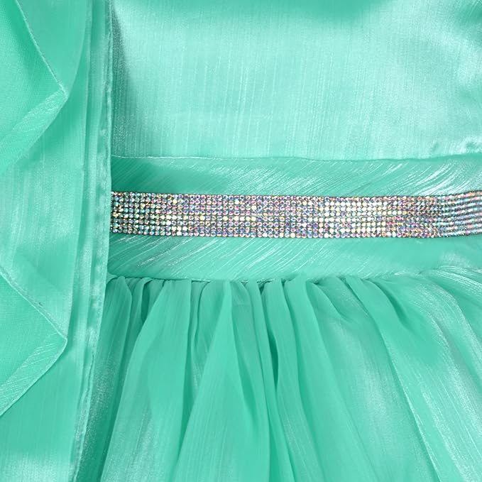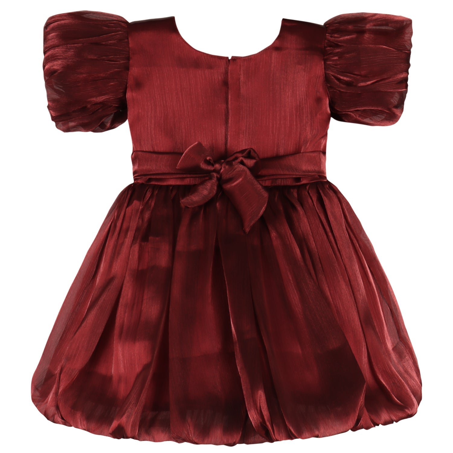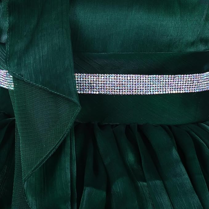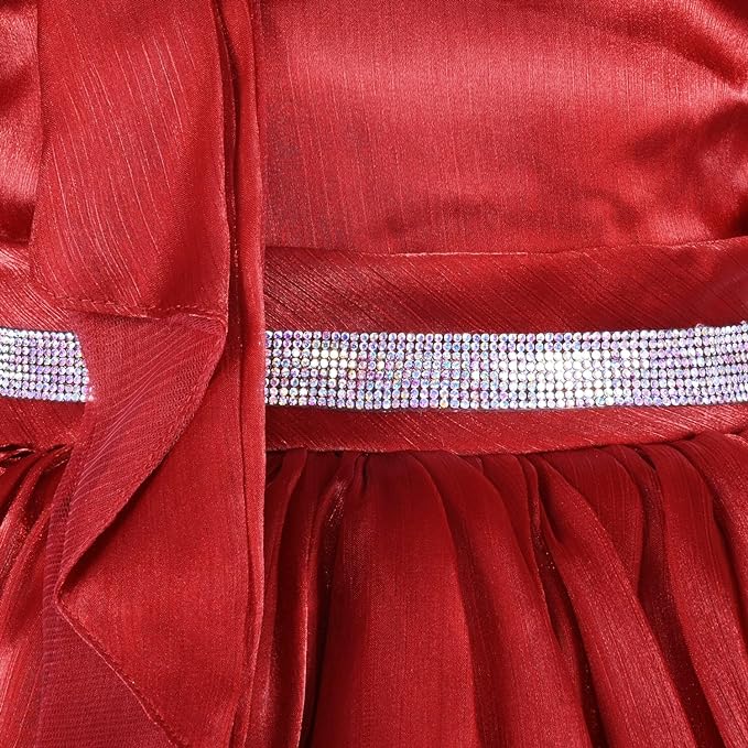 This rhinestone floral embellished knee-length dress is a stunning addition to any little girl's wardrobe. Featuring elegant puffed sleeves and a stylish balloon hem skirt, it creates a charming and graceful silhouette. The classic round neck adds a timeless touch, making it perfect for special occasions like birthdays, weddings, or festive celebrations. Crafted from soft tissue Organza fabric, it ensures both comfort and a luxurious feel. The dress is adorned with delicate rhinestone floral embellishments, adding a hint of sparkle. A back zip closure allows for easy dressing, making this outfit as convenient as it is beautiful.