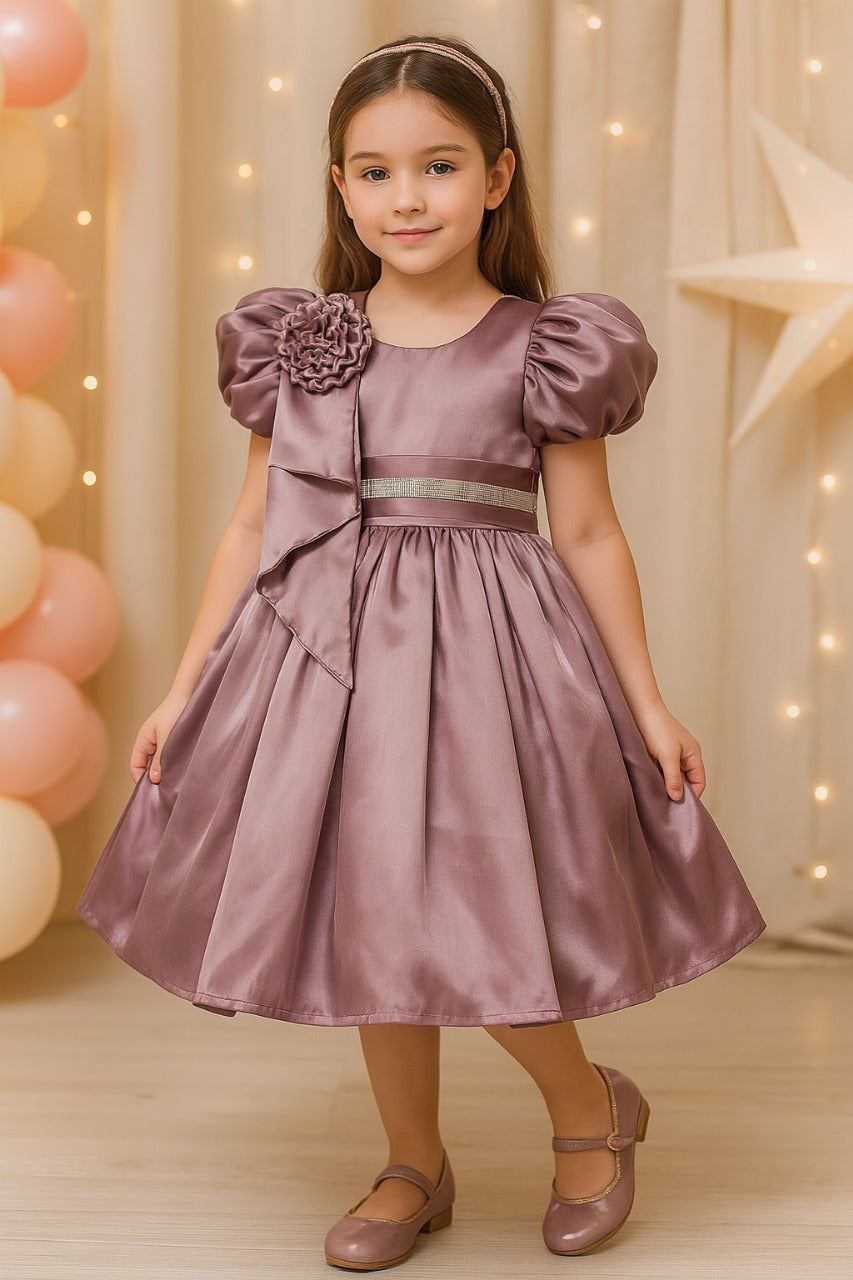 Rhinestone Floral Embellished Balloon Party Dress - bxap258ppl_3-6_Months