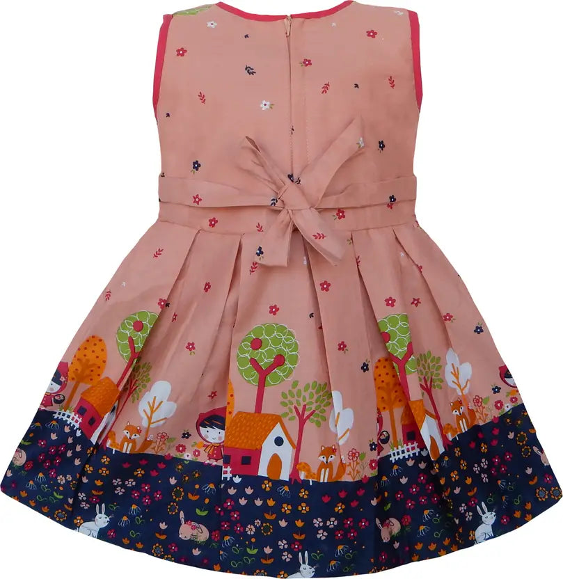 Girls Cotton Printed Pleated Summer Dress - ctn568pch_6-9_Months