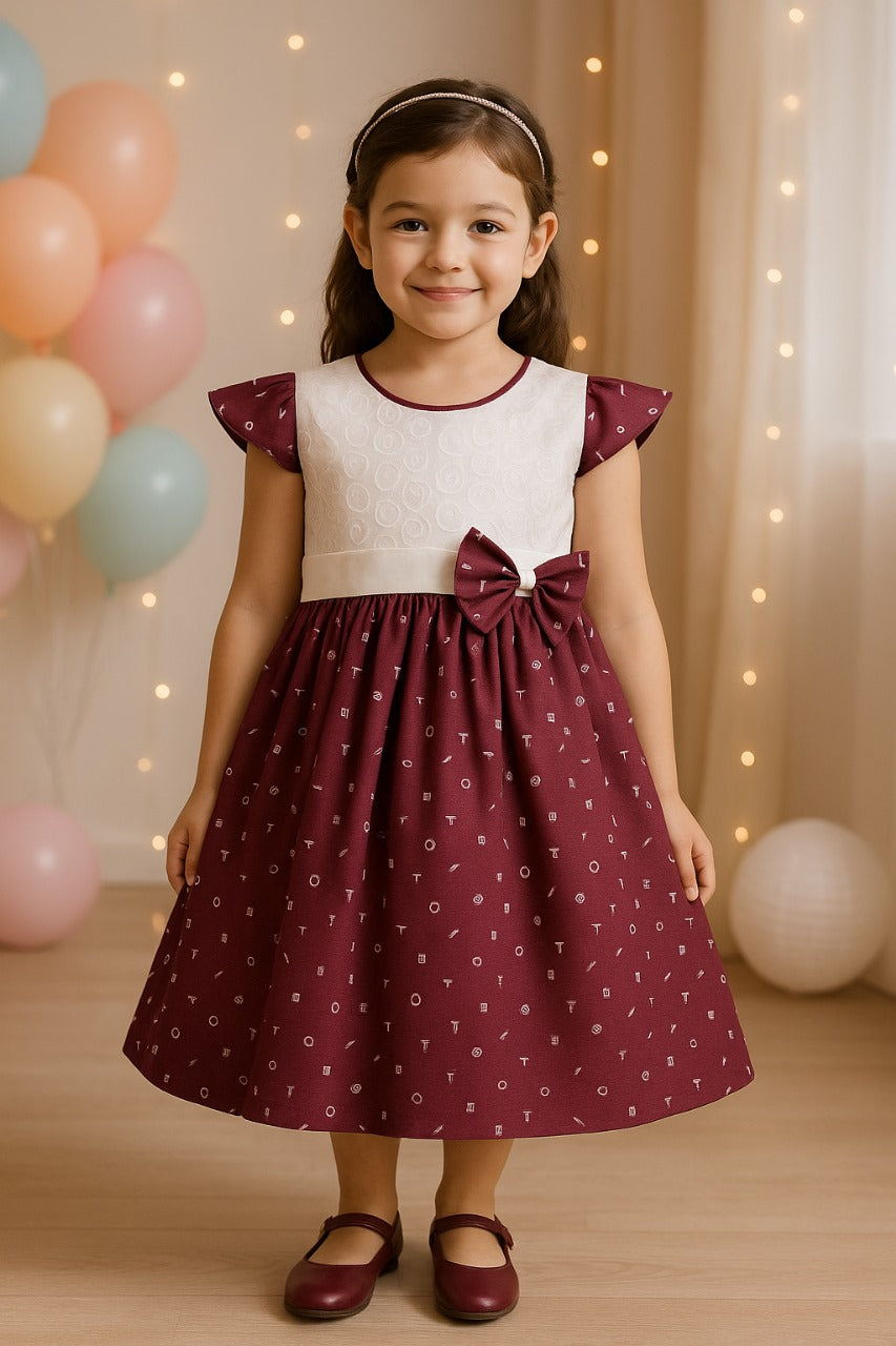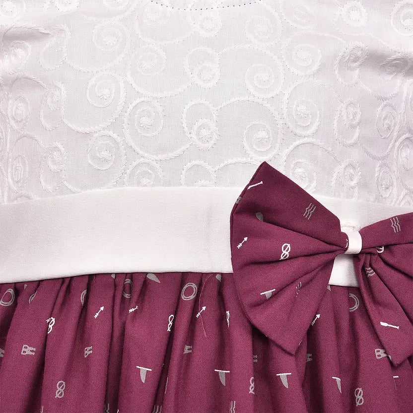 Girls Embroidered Bow Cotton Summer Dress - ctn325mrn_3-6_Months
