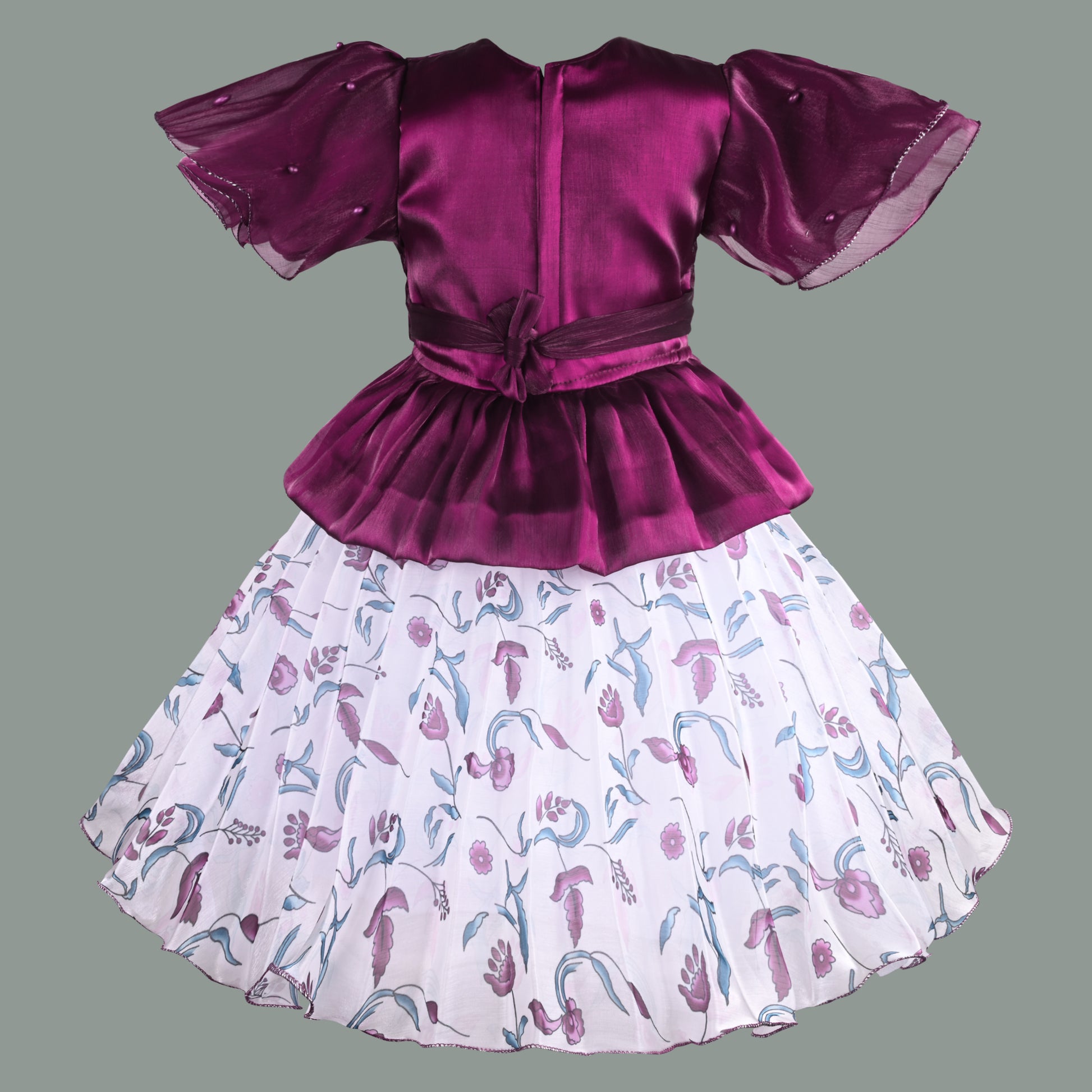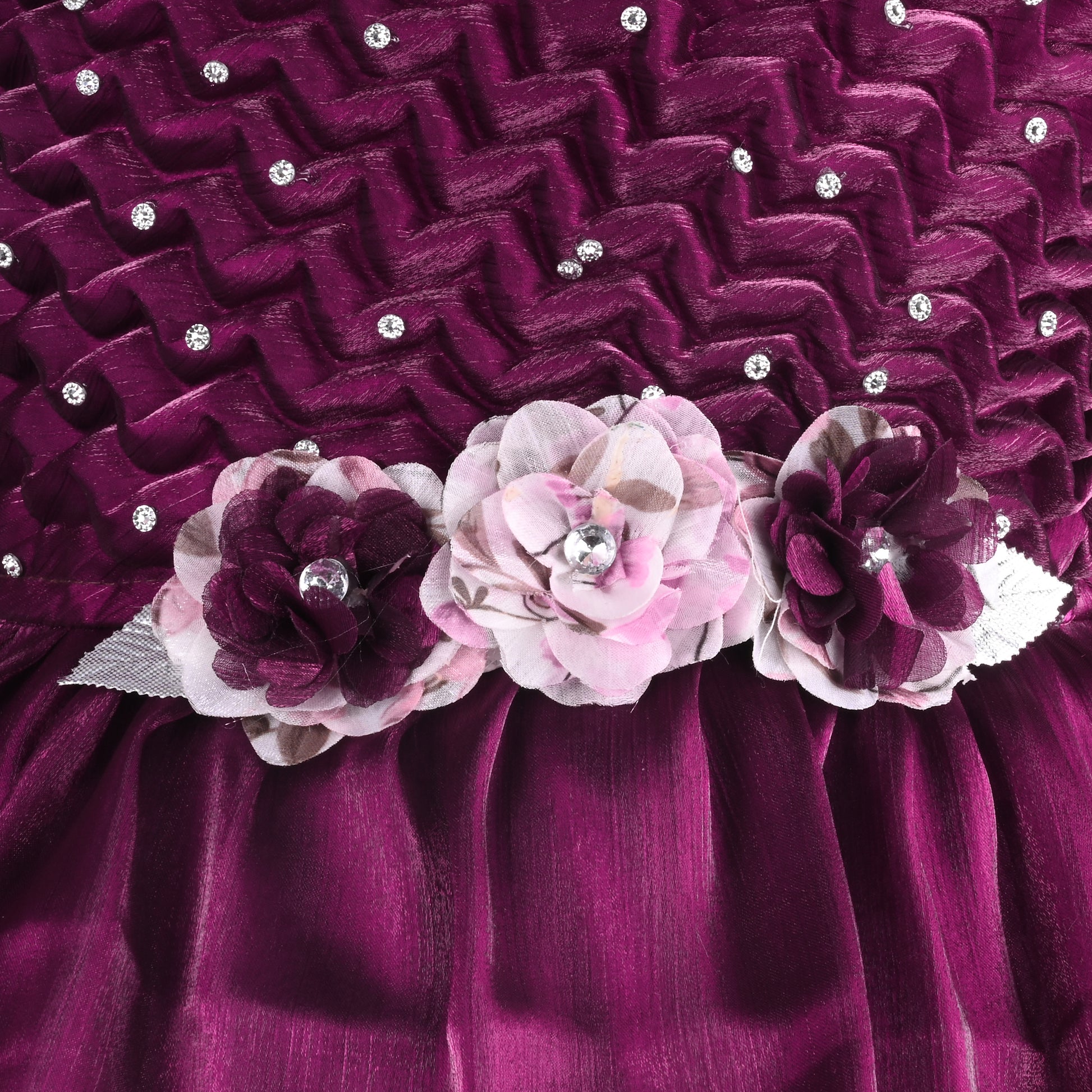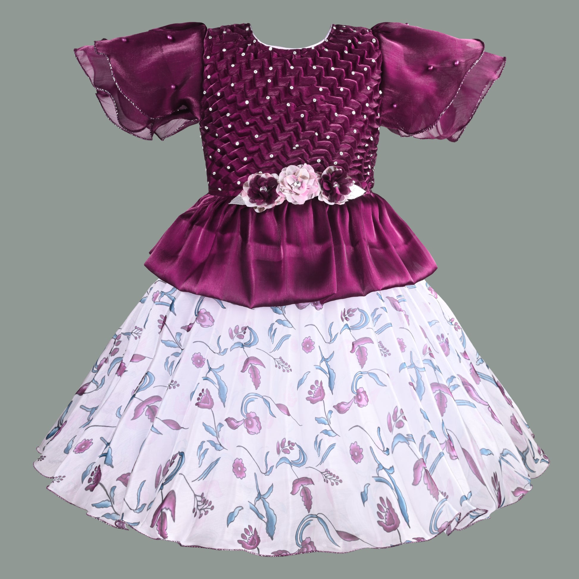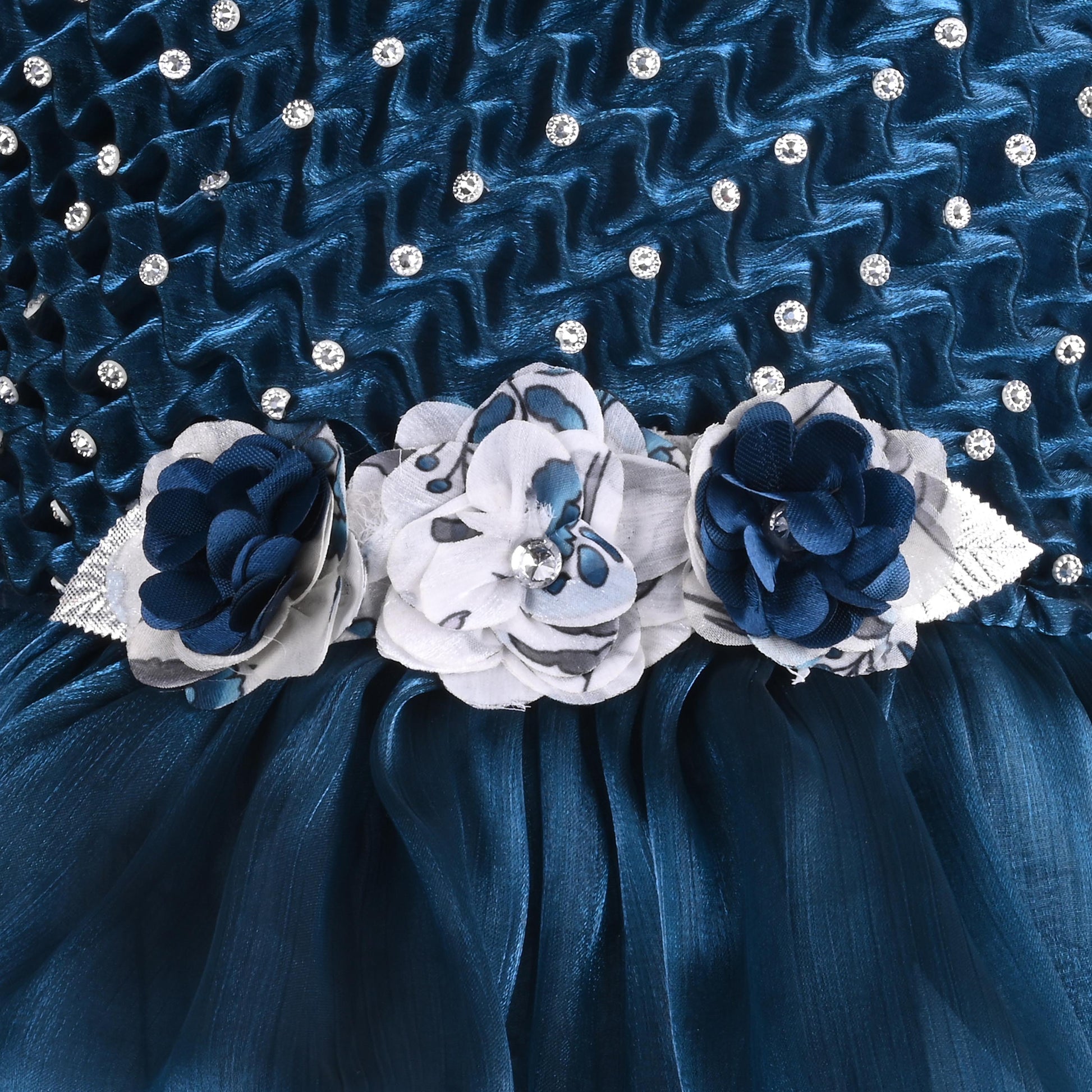 This girls' floral applique embellished ruffle sleeve printed party dress is a perfect combination of elegance and charm. Crafted from soft, high-quality georgette fabric, it features a beautiful floral print that adds a vibrant and playful touch. Delicate floral appliques and stone embellishments enhance its graceful appeal, while the round neck and ruffle sleeves bring a trendy and stylish flair. Designed for both comfort and sophistication, this dress offers a flattering fit and ease of movement. Ideal for birthdays, weddings, and festive celebrations, it pairs effortlessly with ballet flats and matching accessories for a picture-perfect party look.