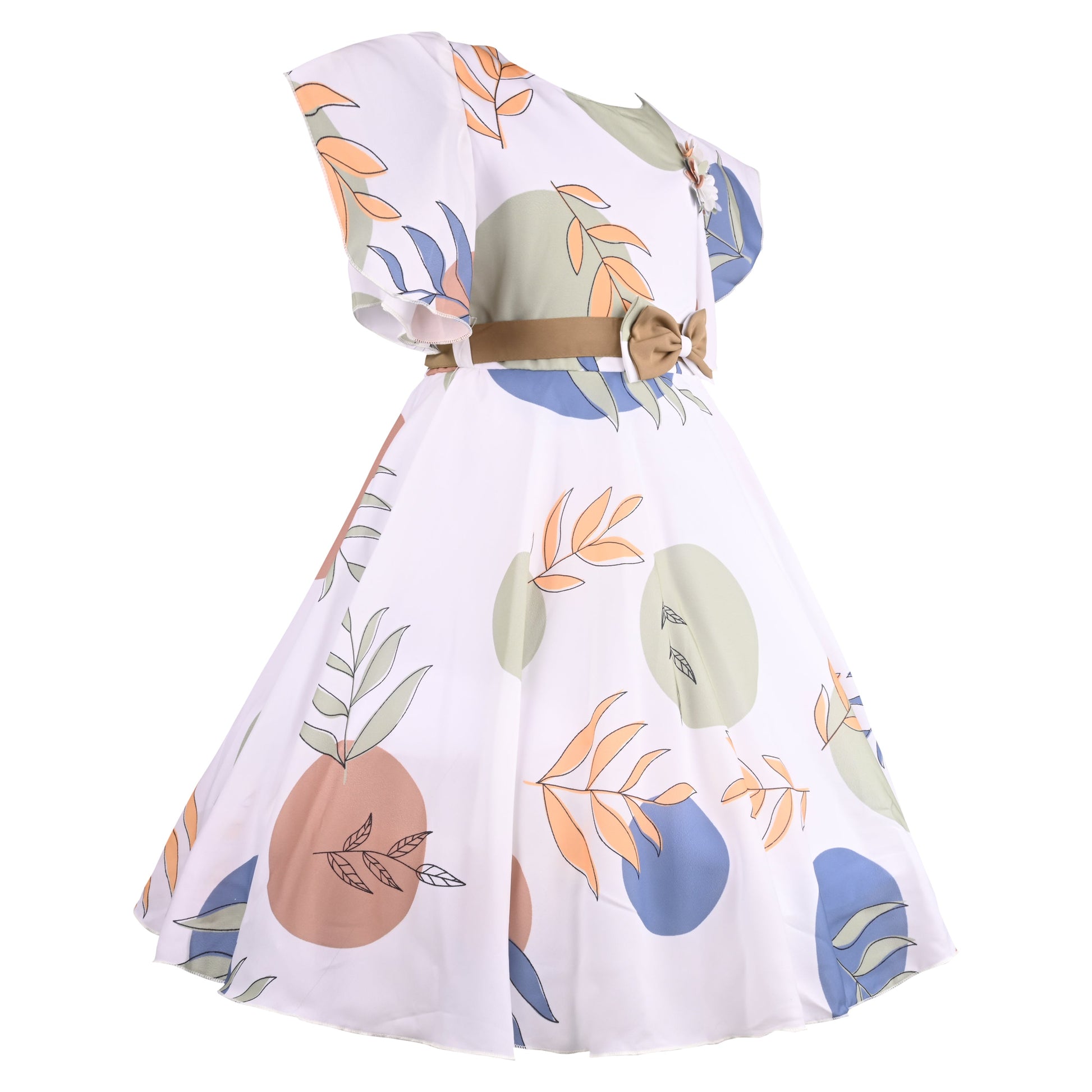 Girls Floral Print Flared Sleeve Fit and Flare Frock Dress - stn862bwn_2-3_Years