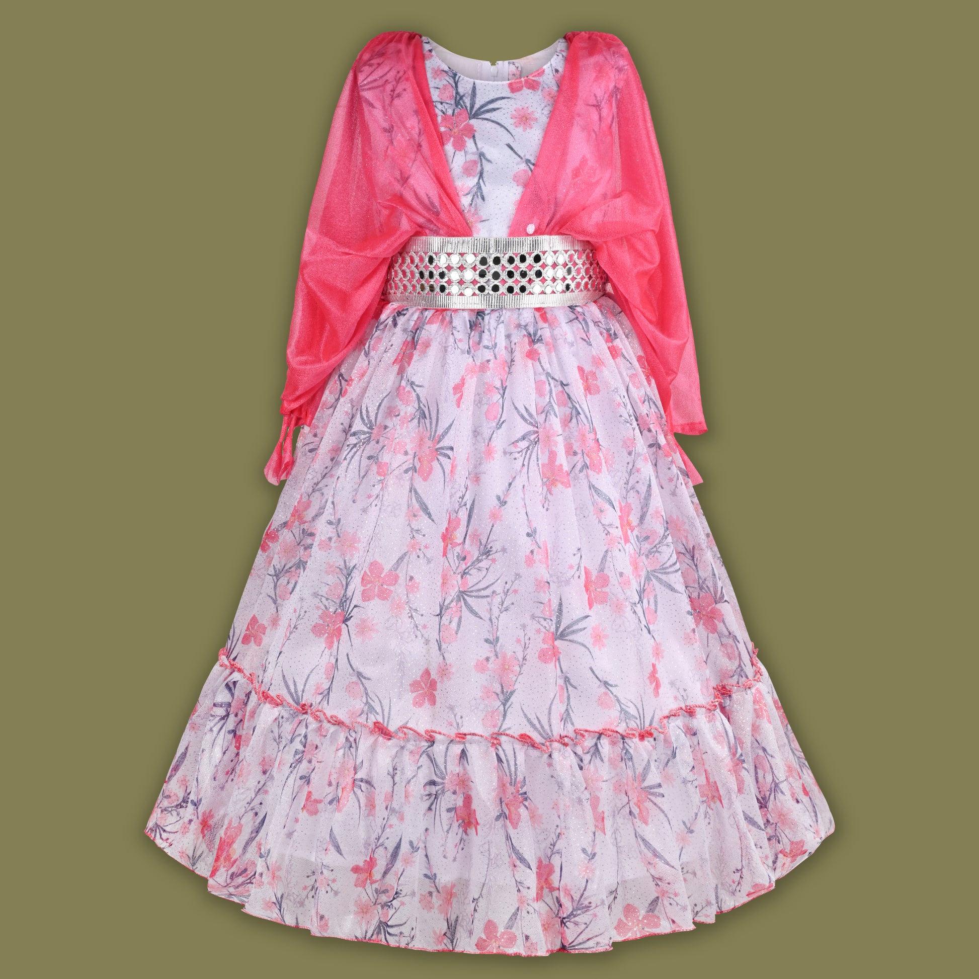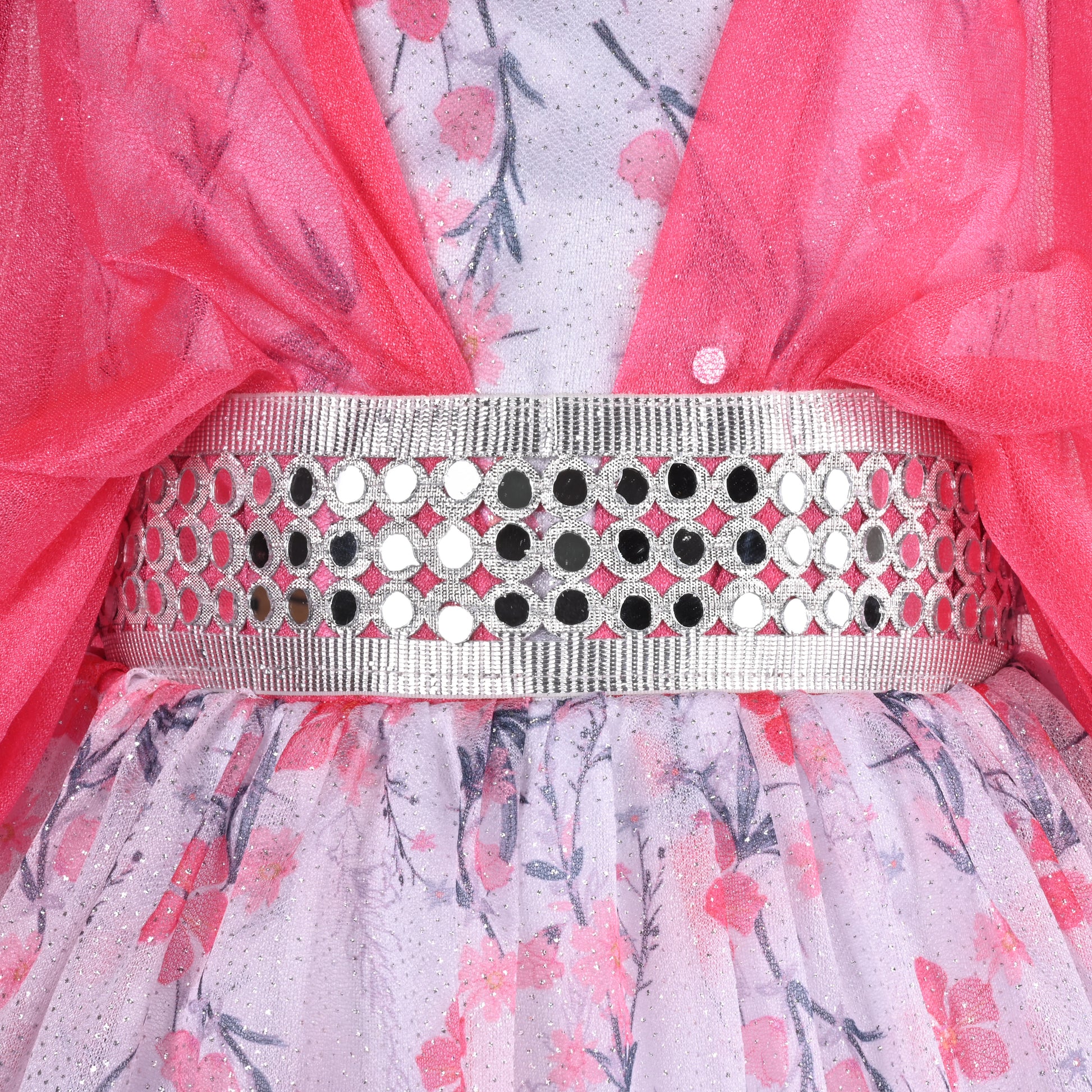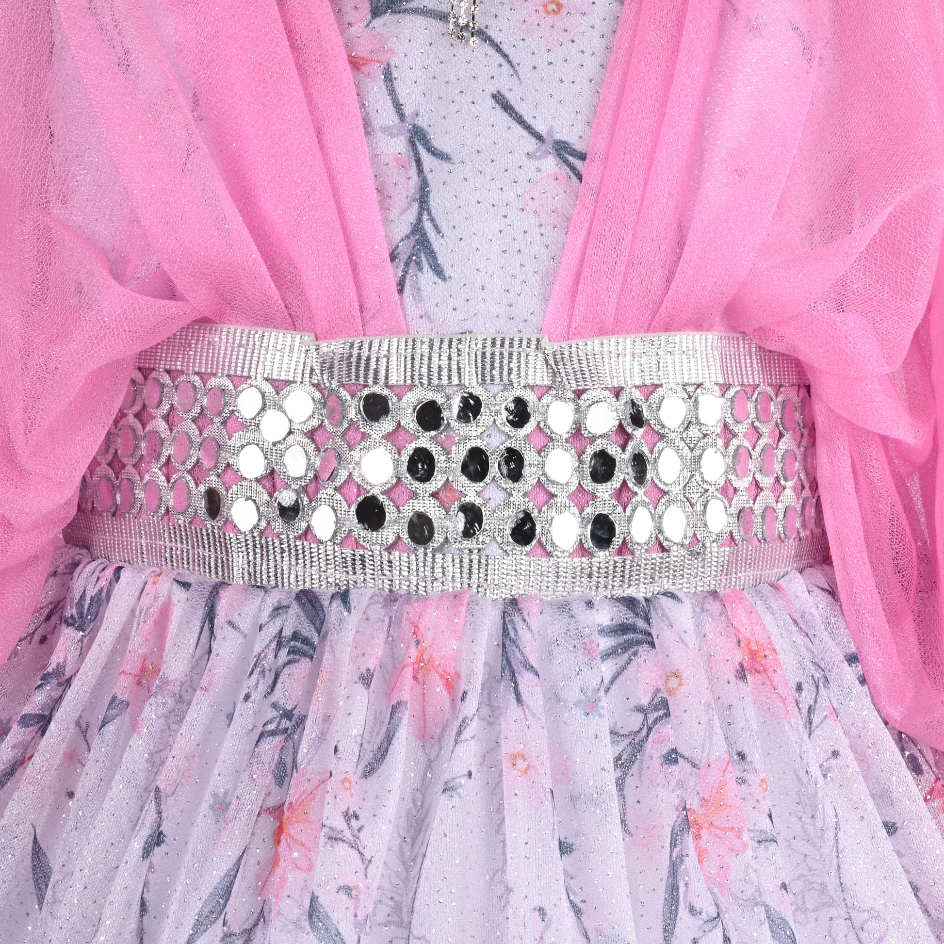 This girls’ tiered dress features flowy kimono sleeves, a sparkling mirror-embellished belt, and layered detailing for a festive, boho-inspired look. Made from lightweight fabric, it’s perfect for celebrations, weddings, and stylish ethnic occasions.