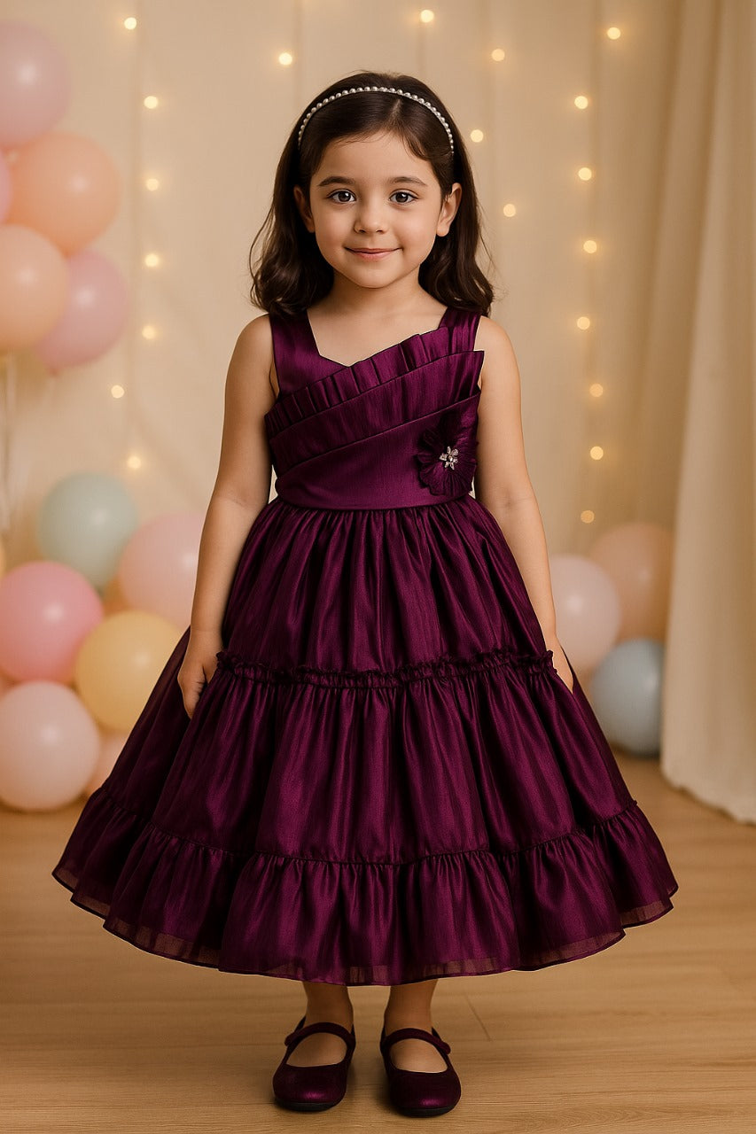 Girls Knee Length Net Floral Party Dress - bxap253wn_3-6_Months