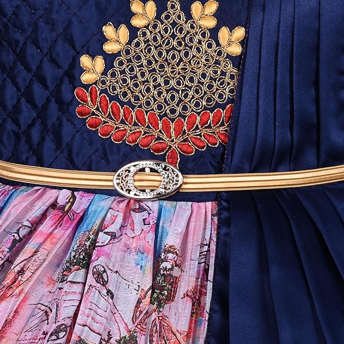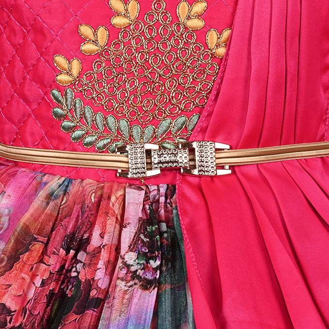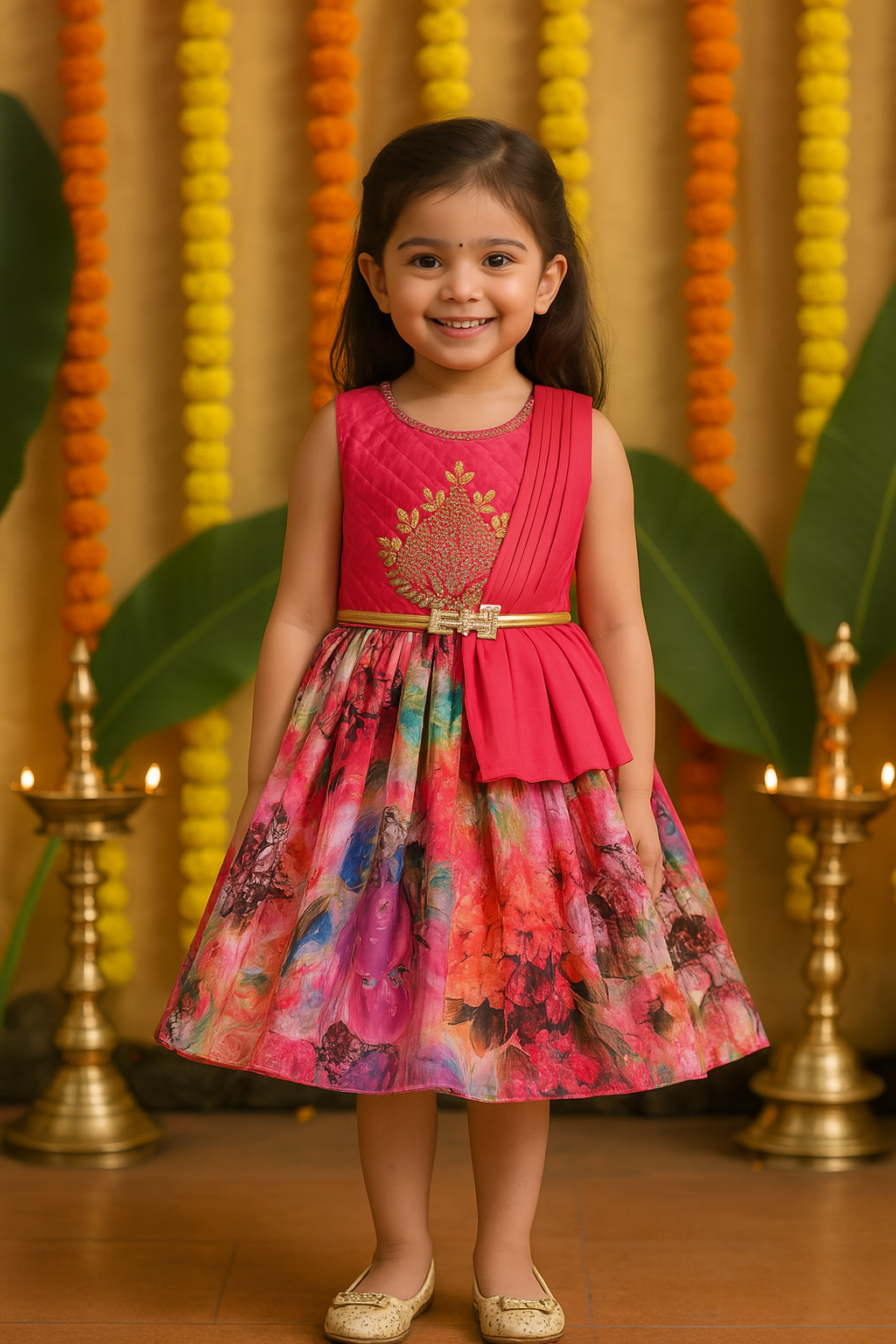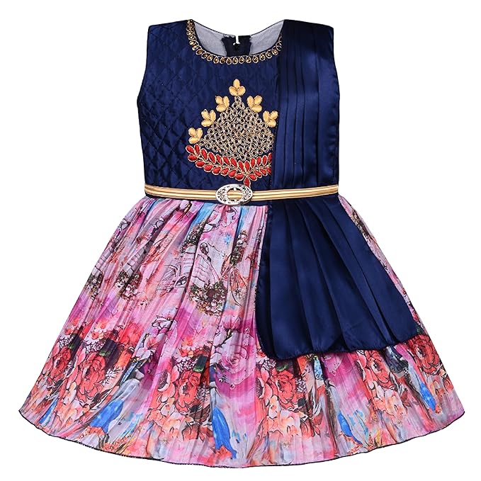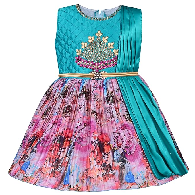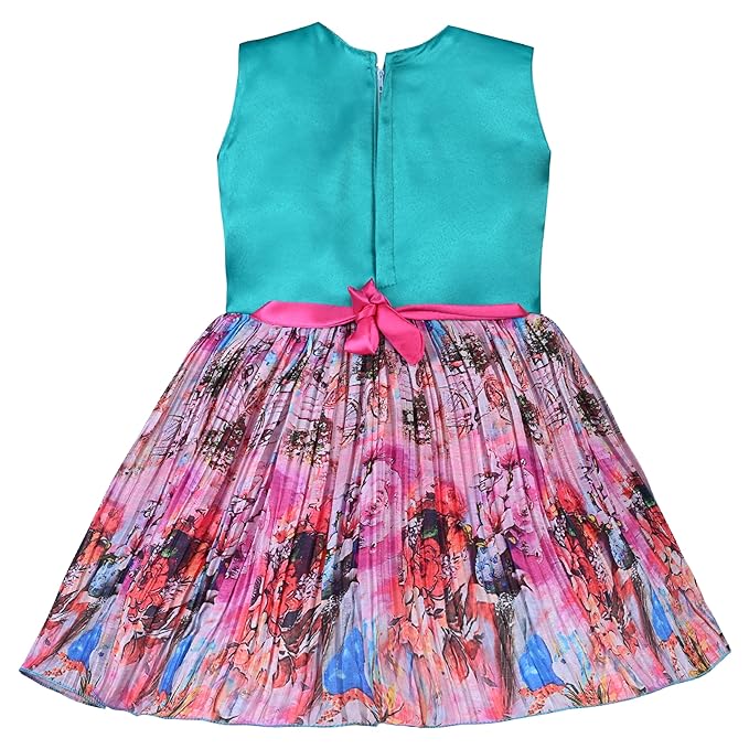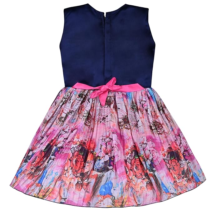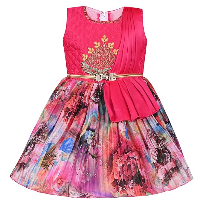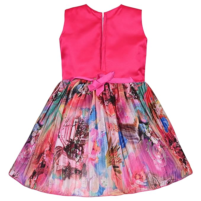 Girls Knee Length Satin Floral Print Dress - fe3249pnk_3-6_Months