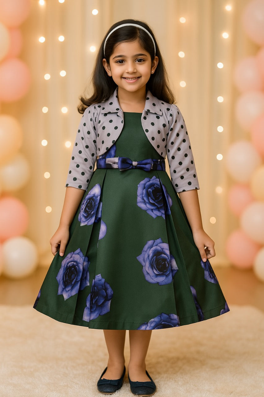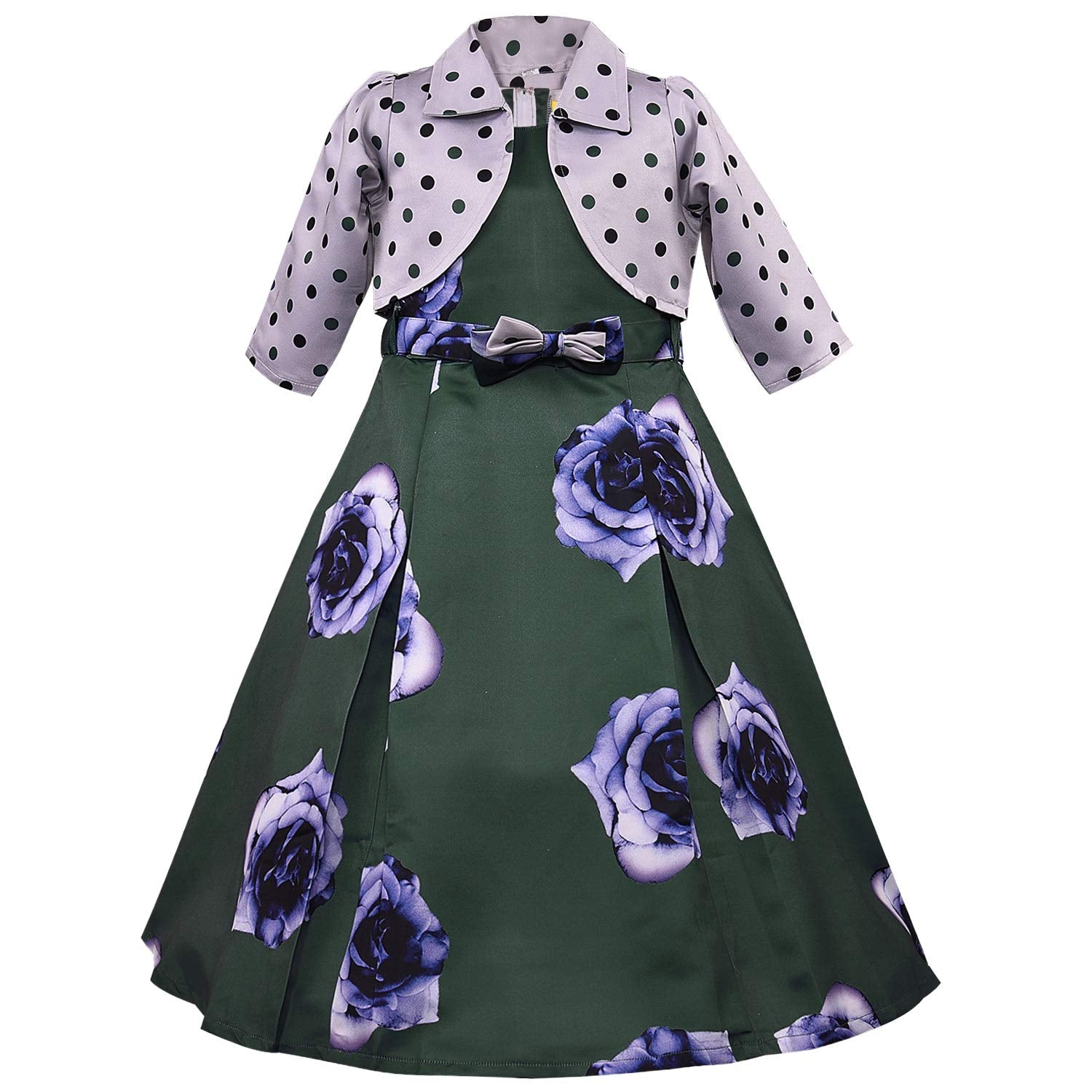 Girls Long Dress Gown with Jacket-(LF215grn)