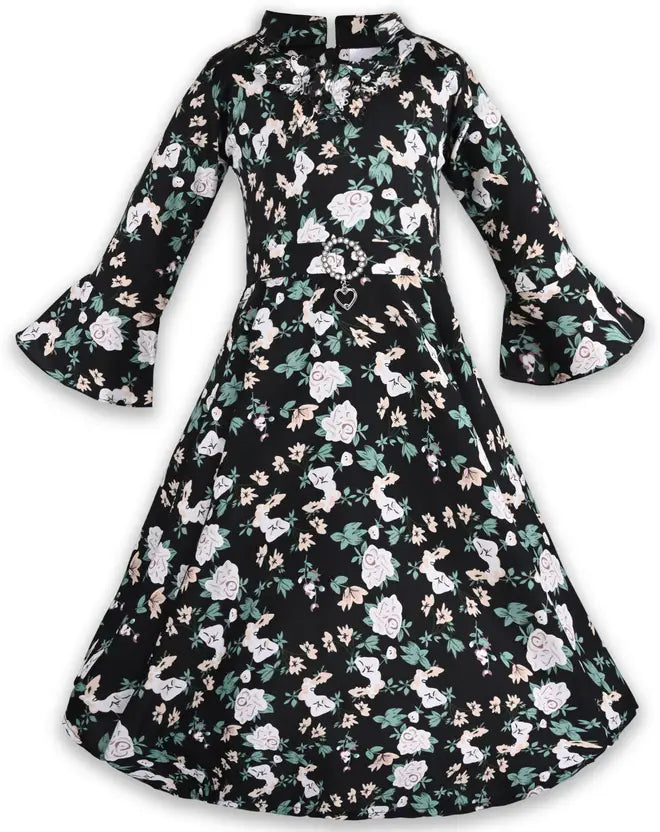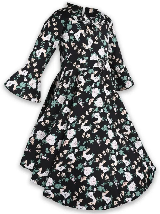 Girls Midi/Knee Length Party Dress cslp1080blk