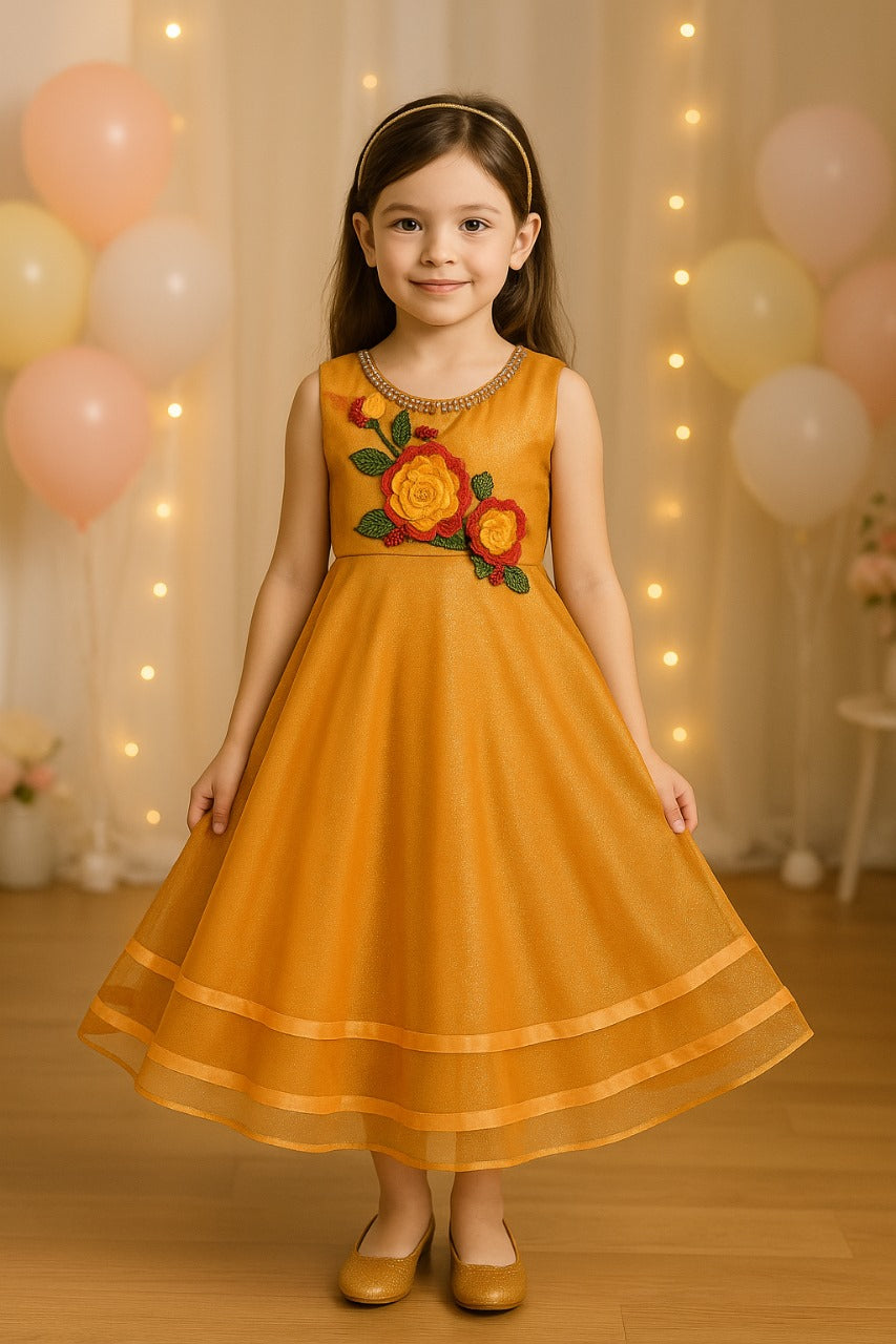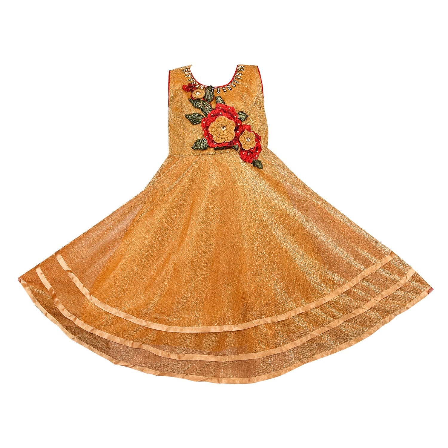Girls Party Wear Long Dress Birthday Gown for Girls LF135gold - LF135gold-3-4 Years