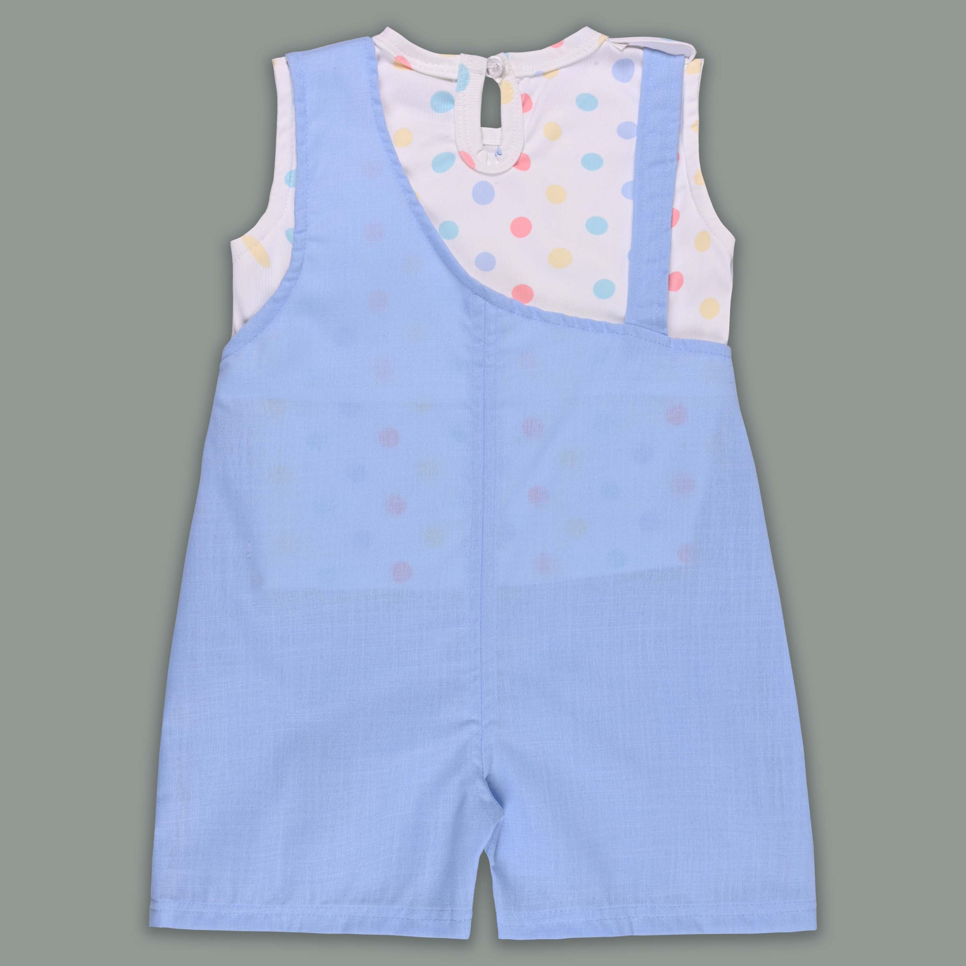 Girls Pastel Polka Cotton Tank Top with One-Shoulder Dungaree btp856 - btp856blu_3-6_Months