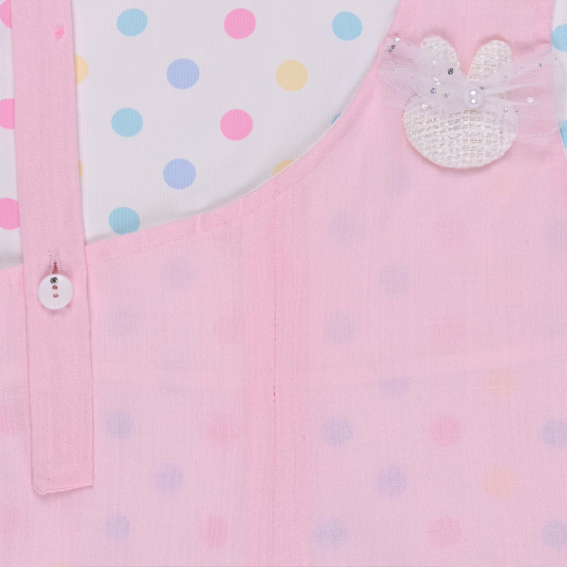 Girls Pastel Polka Cotton Tank Top with One-Shoulder Dungaree btp856