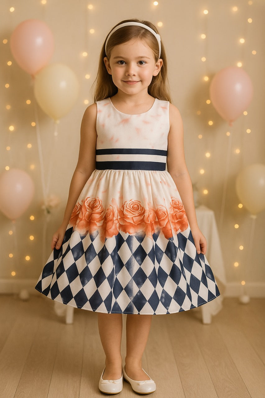 Girls Printed Cotton Summer Casual Dress - ctn510t_6-9_Months