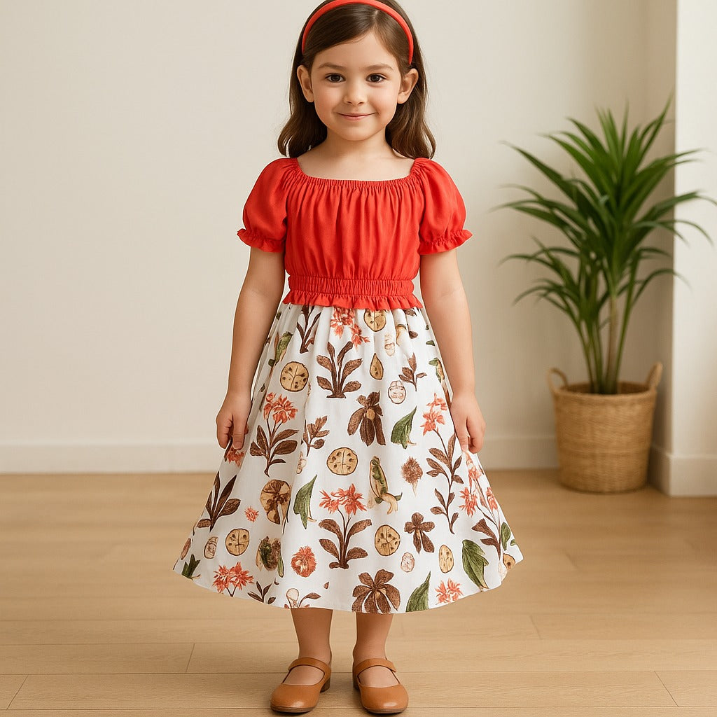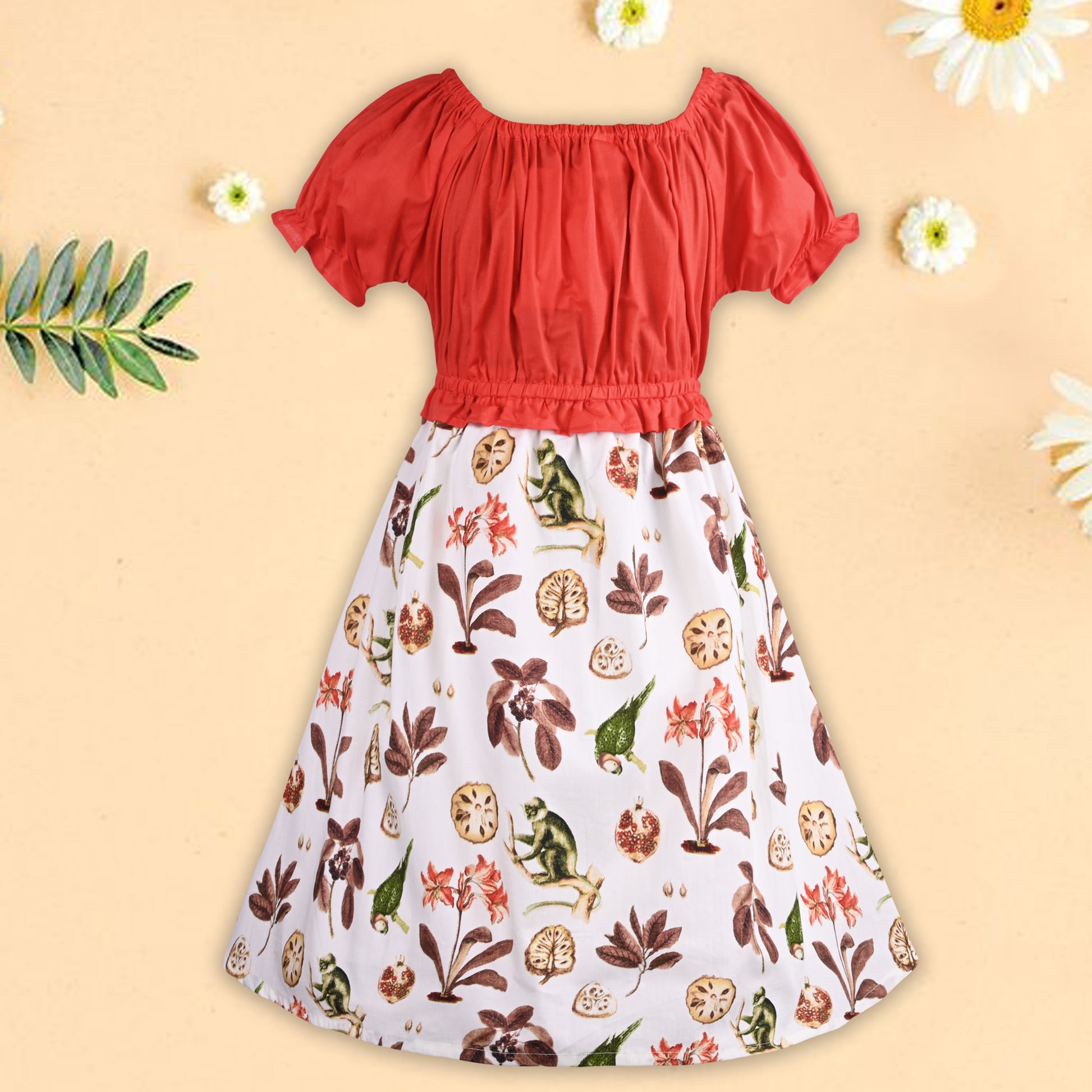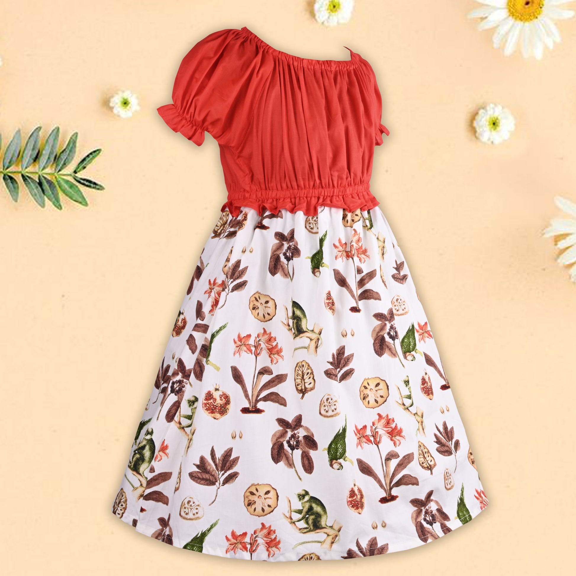 Girls Pure Cotton Floral Printed Summer Casual Dress