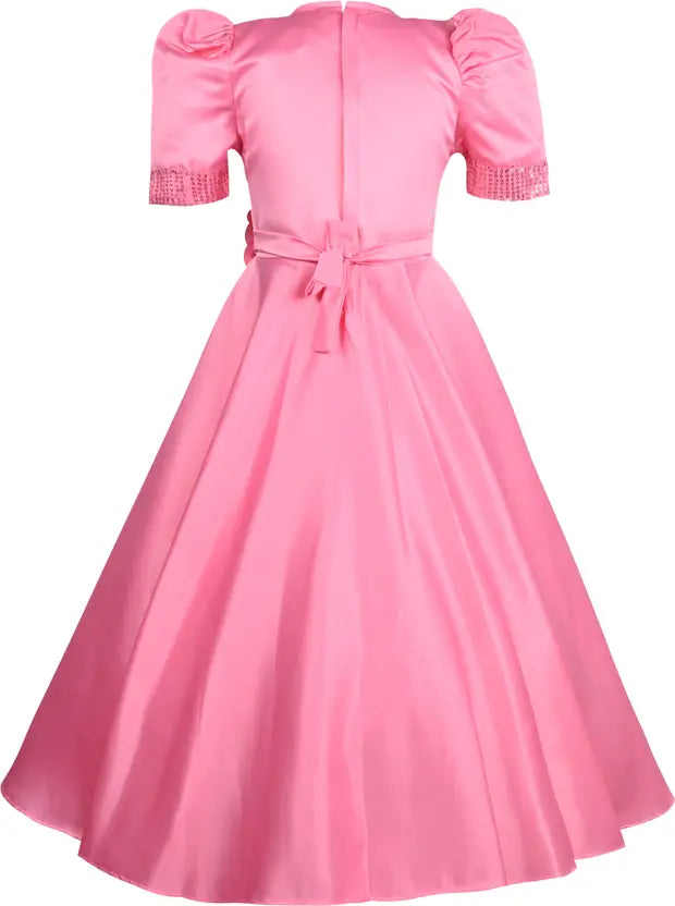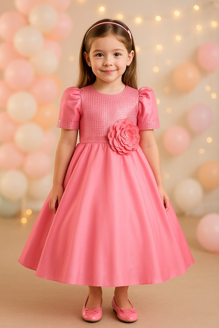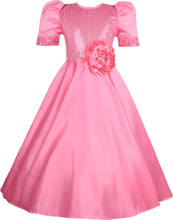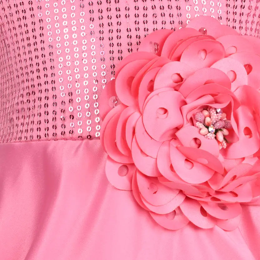Girls Sequin Embellished Floral Full Length Party Dress - lf847bpnk_2-3_Years