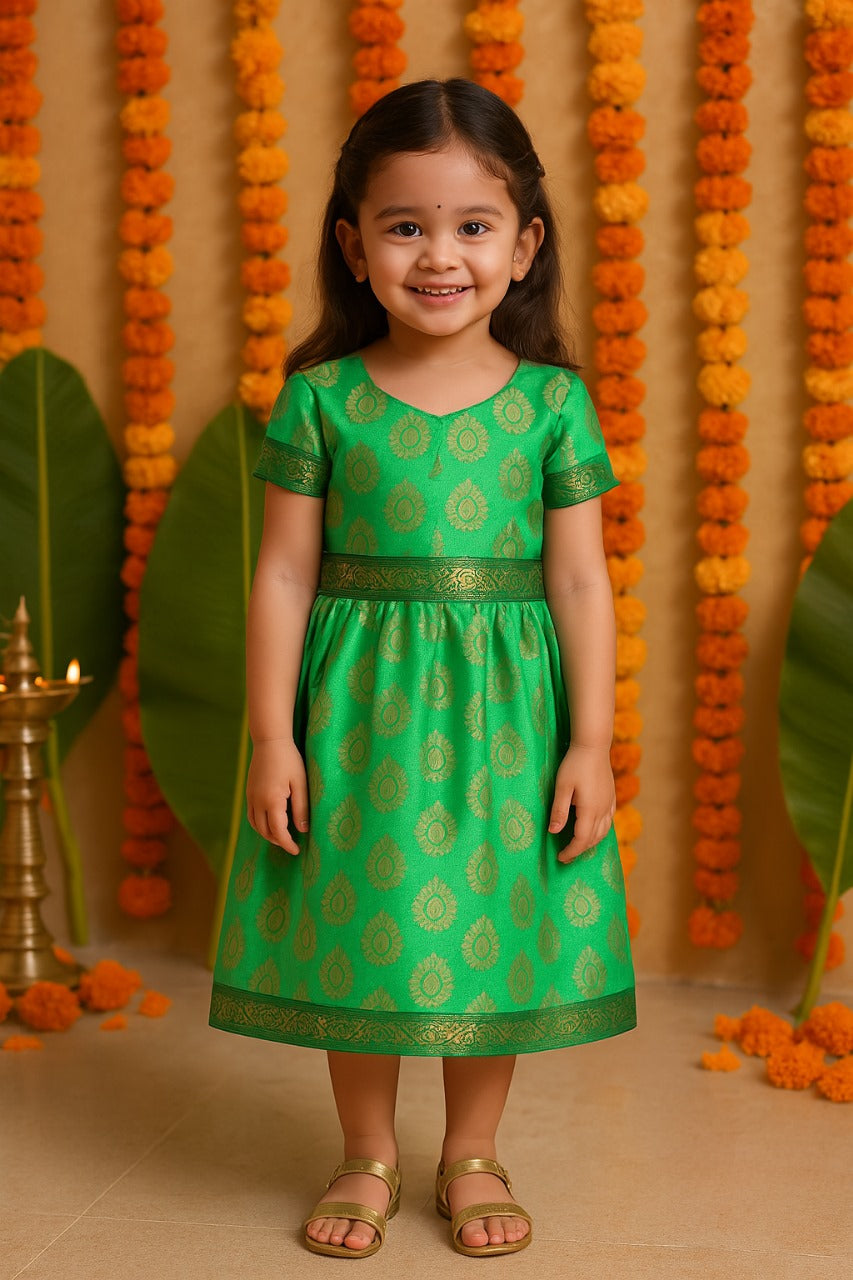 Girls Zari Woven Pattu Pavadai Choli Skirt Set - gc237grn_1-2_Years