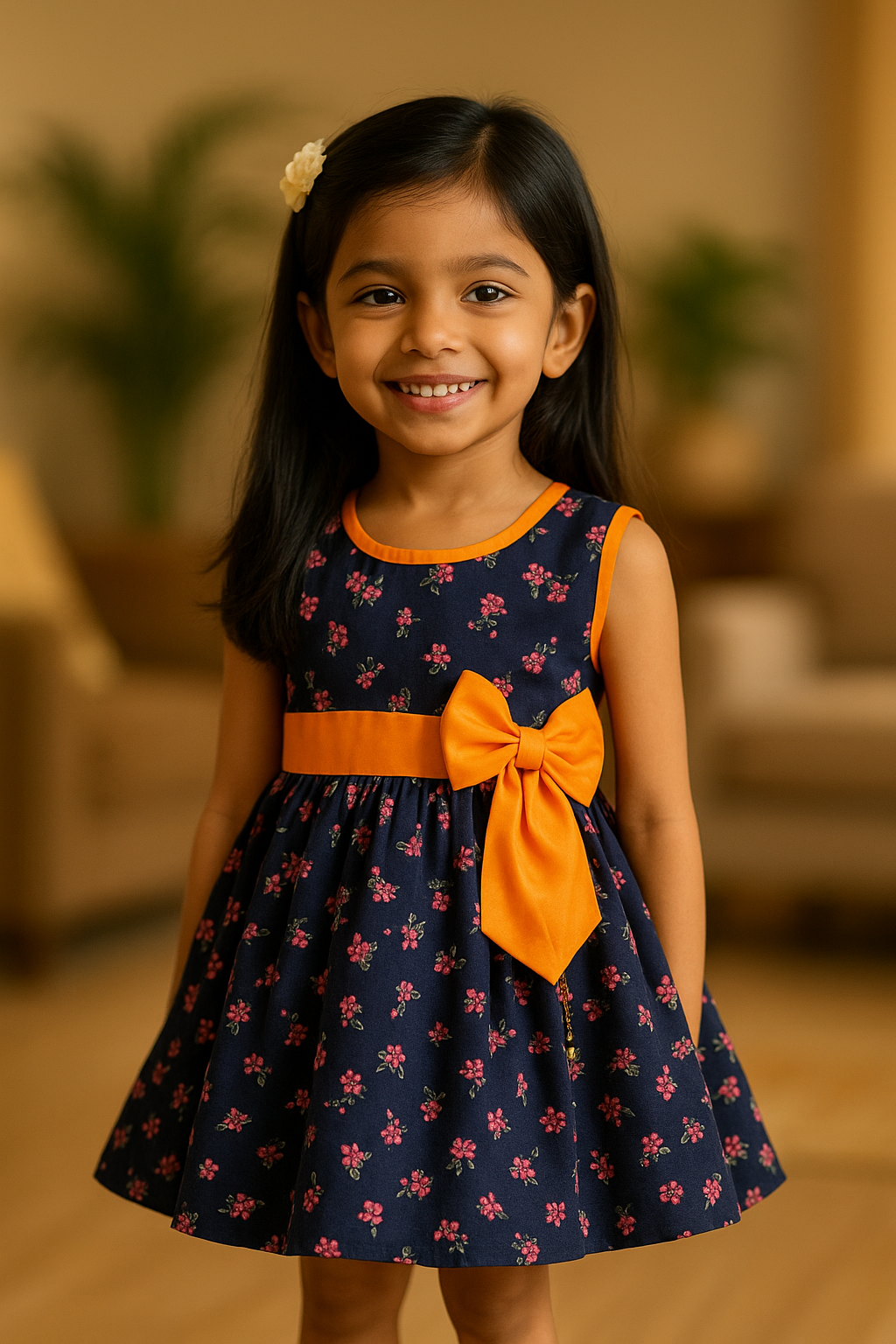 Girls Pure Cotton Floral Printed Summer Casual Dress - ctn323blk_3-6_Months