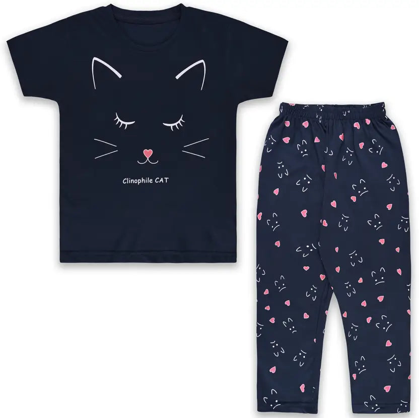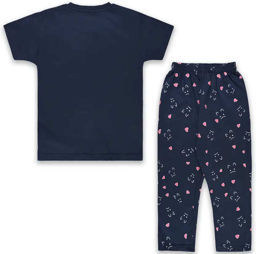 This unisex nightsuit set includes a soft cotton T-shirt and matching trousers, designed for cozy comfort and easy movement. With breathable fabric and fun cat prints, it’s perfect for bedtime, lounging, and all-night comfort for kids.